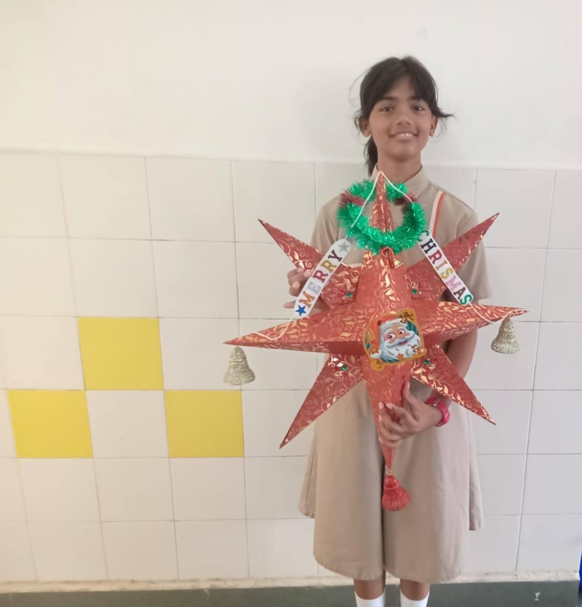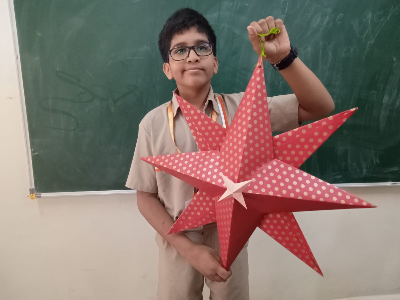 "Class 5 students twinkle with creativity as they engage in a festive star-making activity, crafting unique and dazzling stars to illuminate their classroom with holiday cheer."