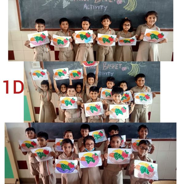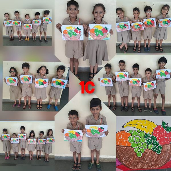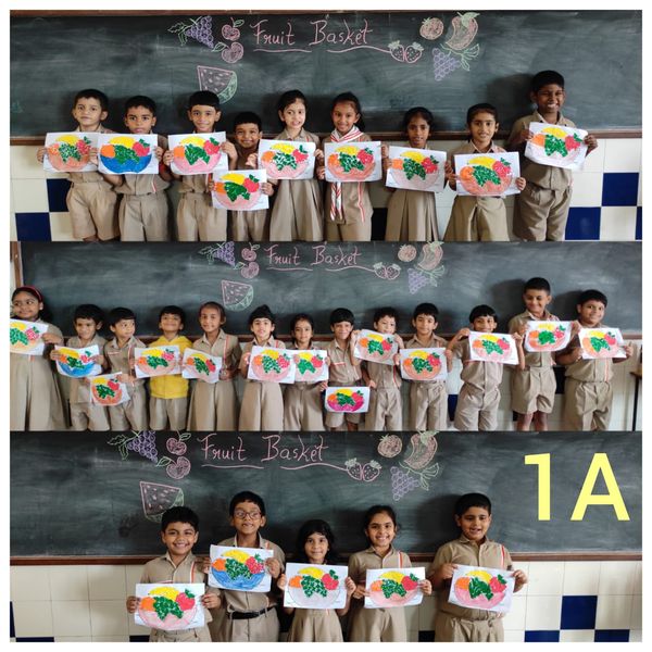 A fruit basket activity was organised for students of class 1 to improve their fine motor skills and hand-and-eye coordination.
