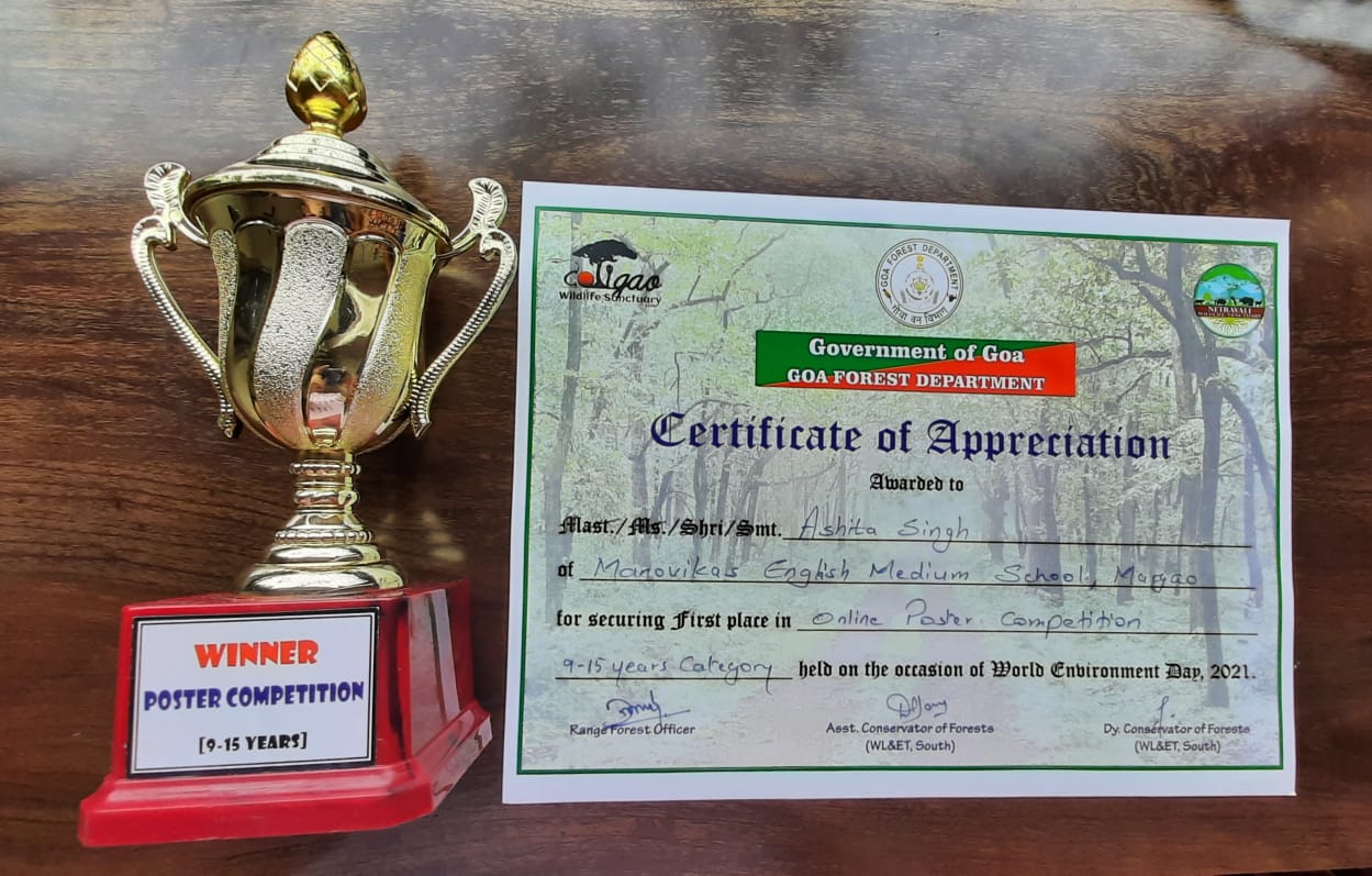 The biggest accomplishment in the field of art for me so far is the first place trophy I won at the state-level art competition organized by the Forest Department, Goa Government. They facilitated me with a trophy and a certificate in an award ceremony at the Cotigao Wildlife Sanctuary, Canacona.
