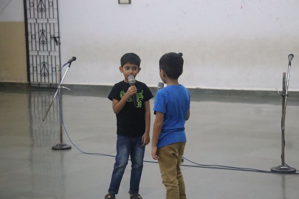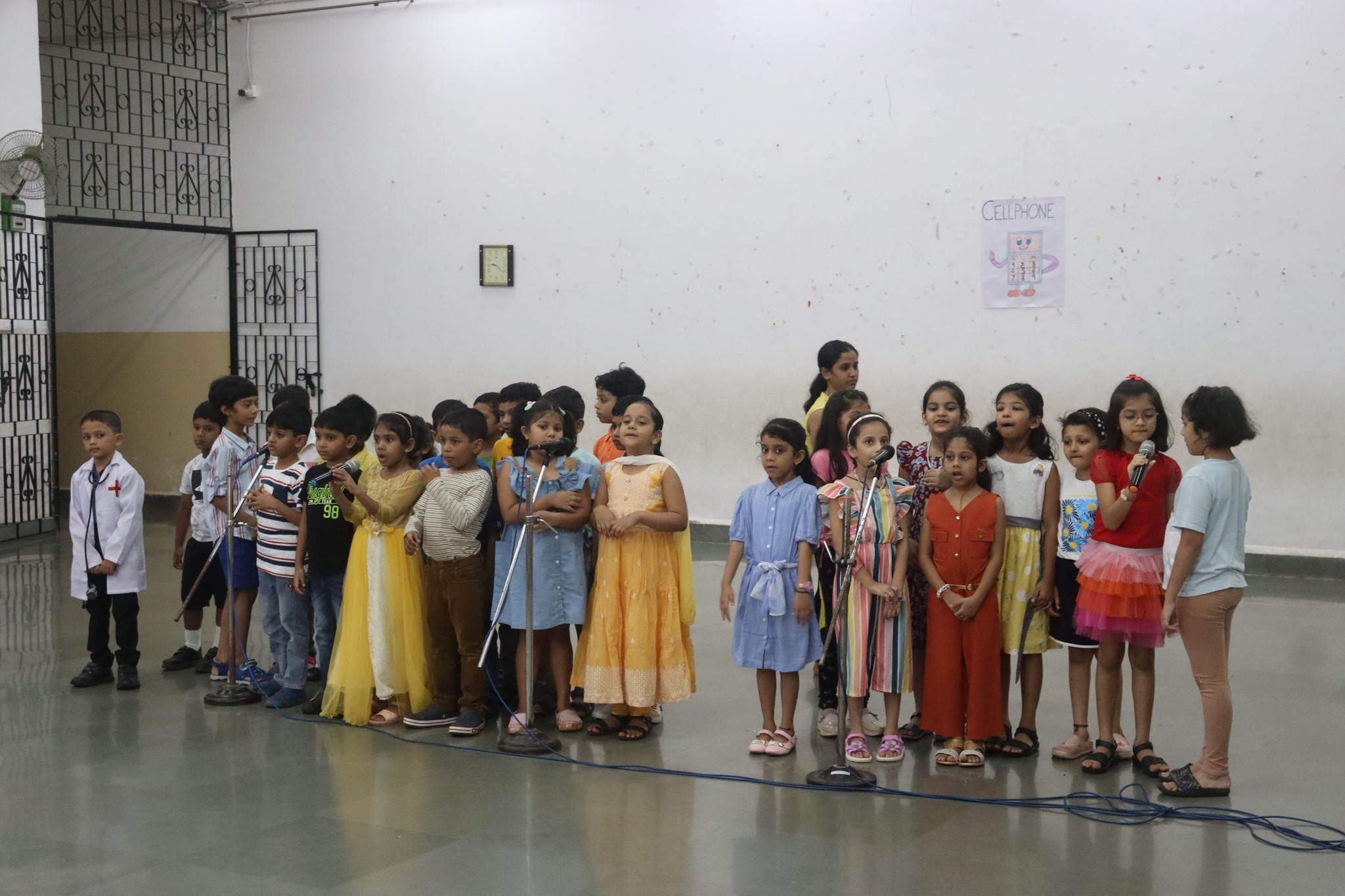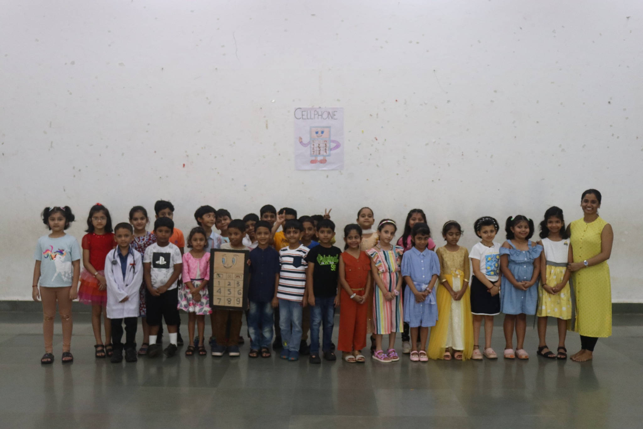 Students of class 1E conducted an assembly on "Cellphone - a good or a bad gadget".