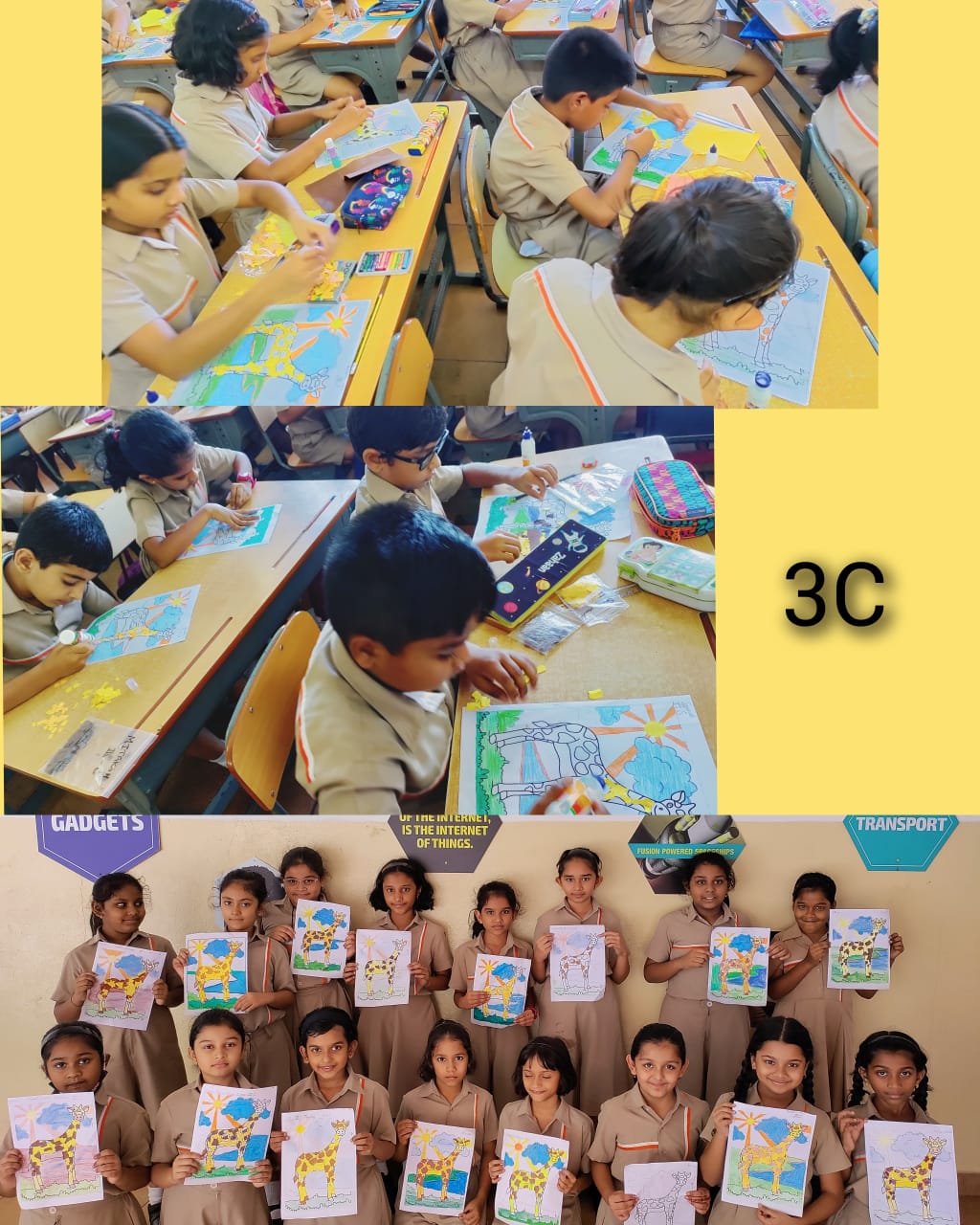 Young minds love working on collages as it unleashes their creativity. A collage making activity was organised for class 3.
