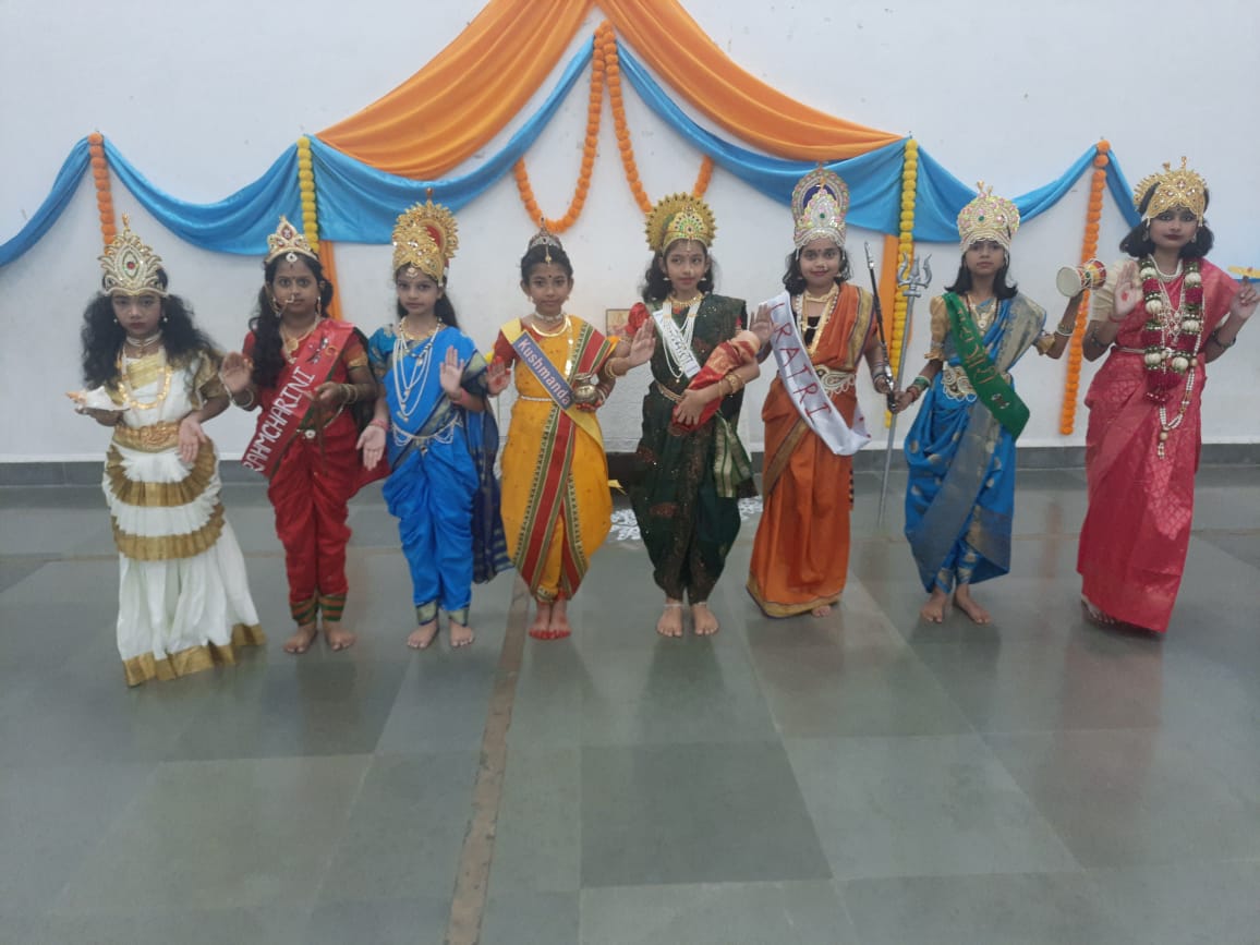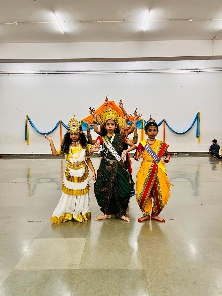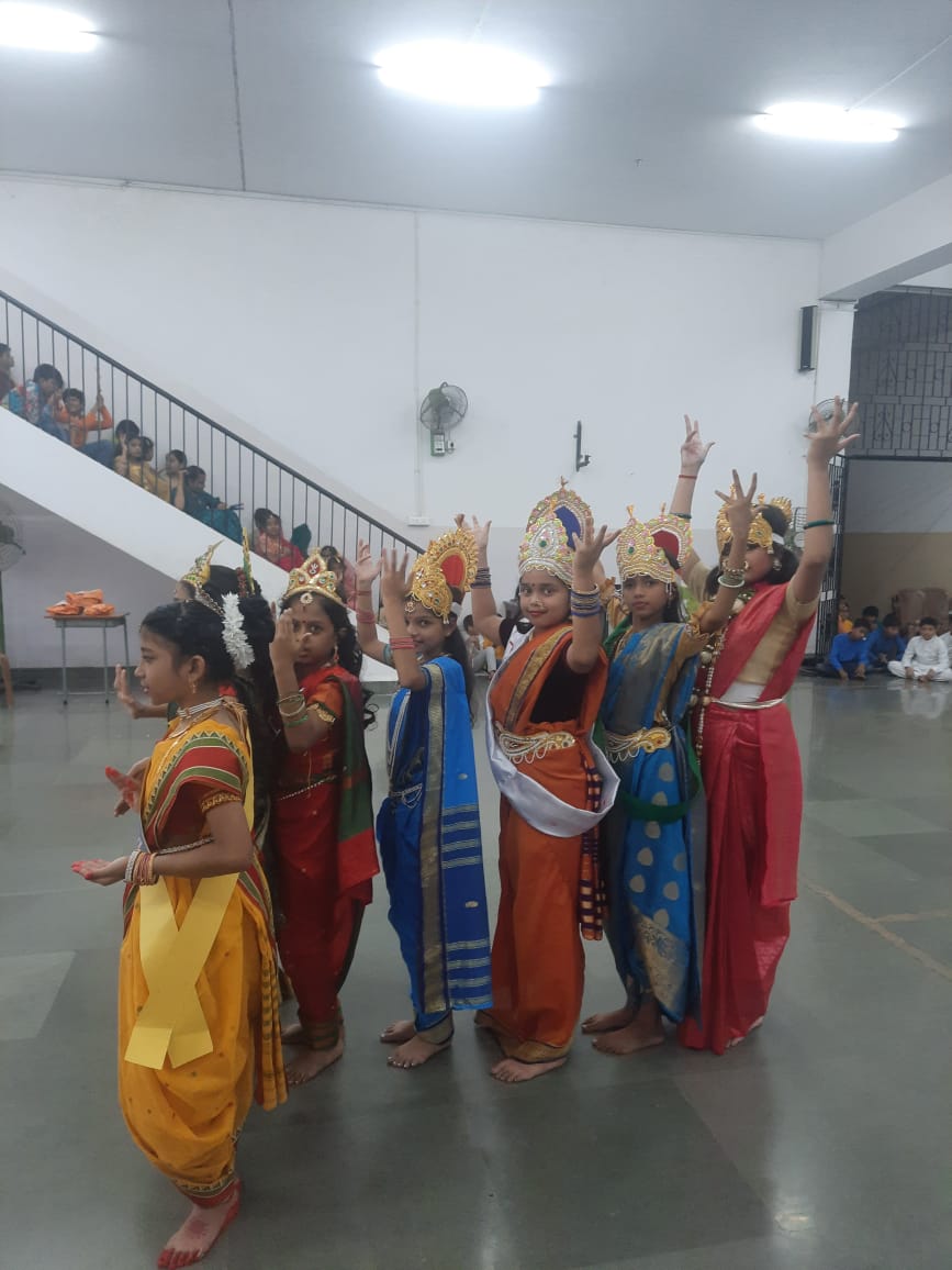 The students of class 4B and 4C conducted a special assembly on Dussehra. The assembly commenced with a devotional Ram Bhajan followed by the manifestation of nine avatars of Maa Durga, where the students dressed themselves as each avatar of Maa Durga and gave a dance performance along with dhunachi (bengali dance).