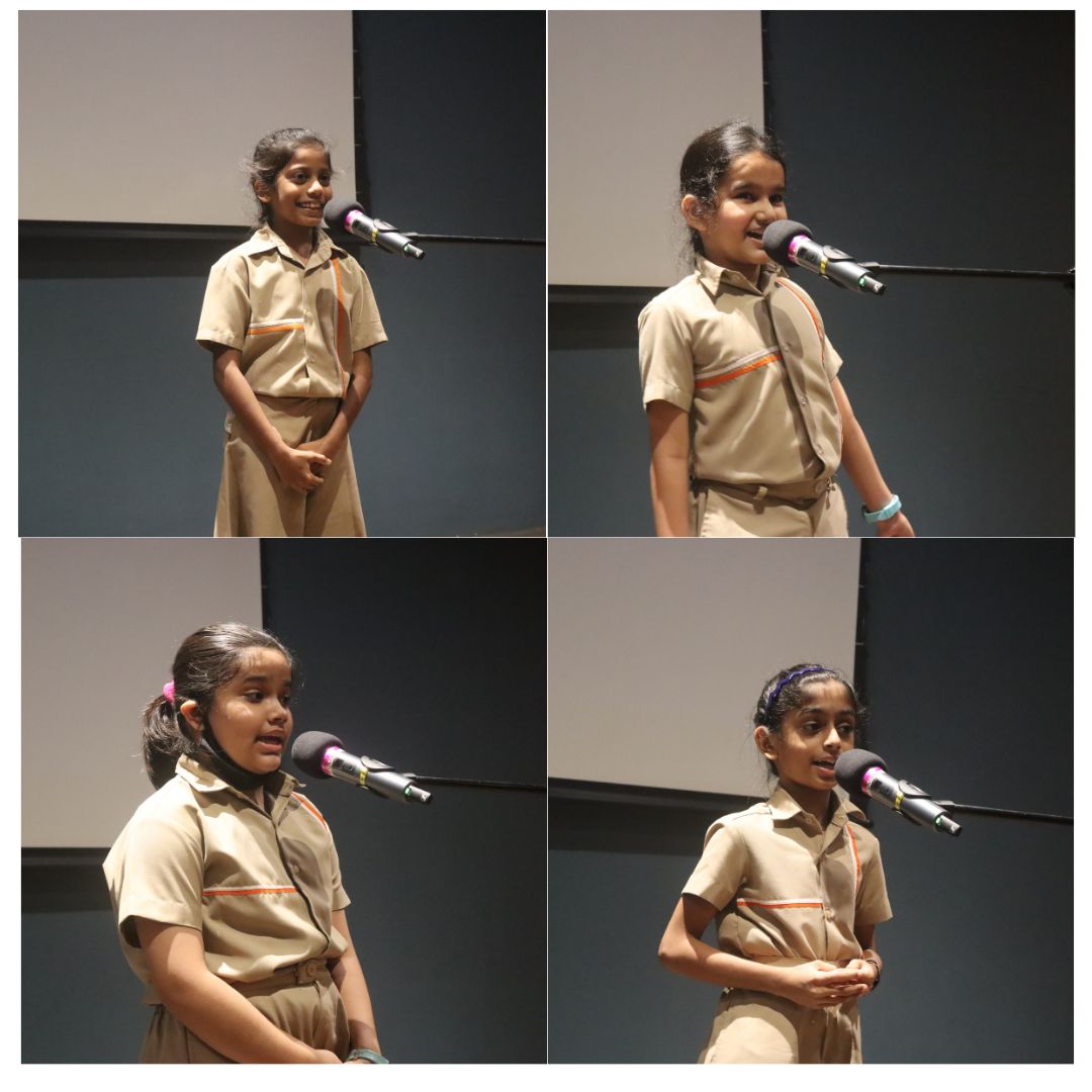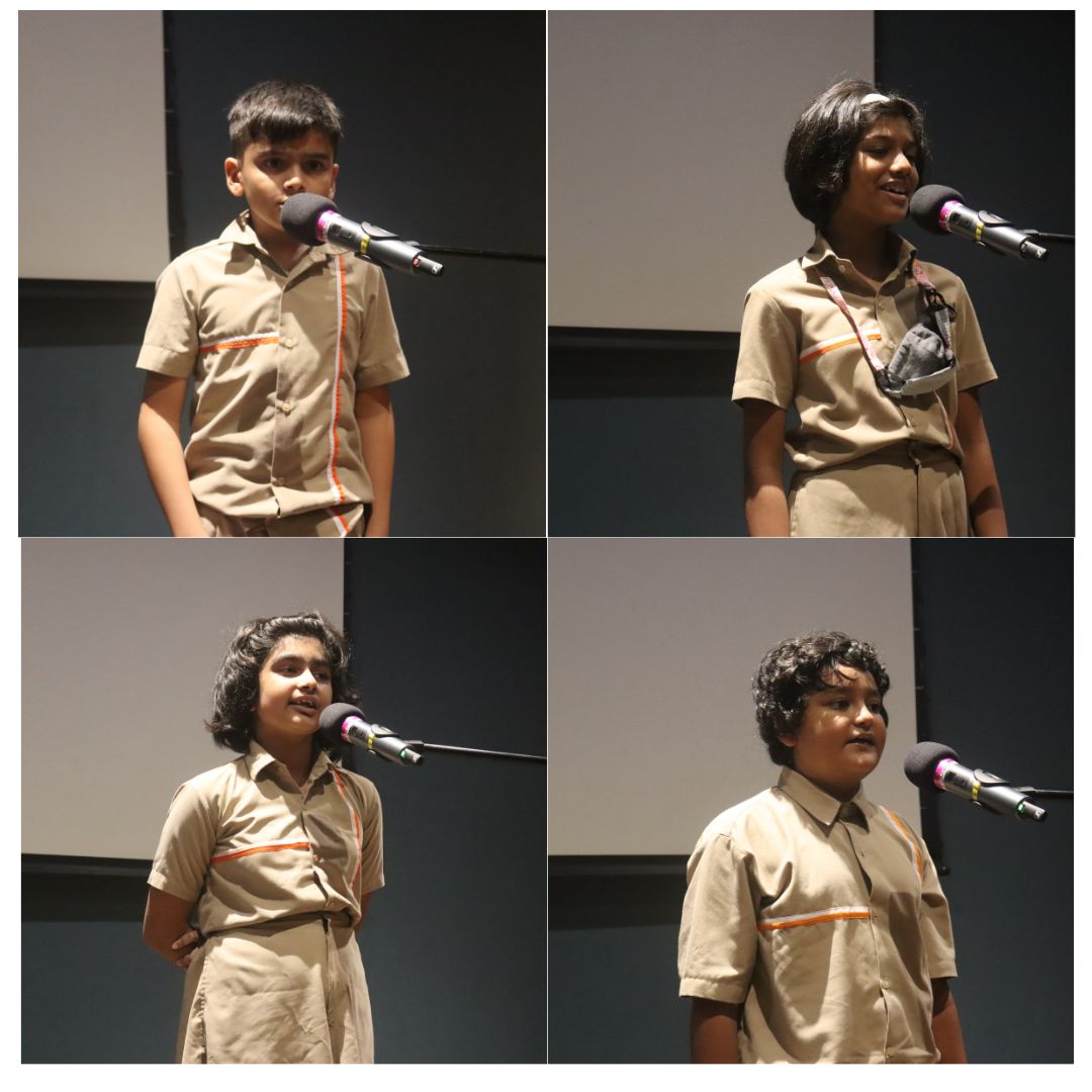 English Singing Competition – Class IV An interclass English Singing competition Was held in the month of July, 2022 The competition received a very enthusiastic response from Children, with 47 entries coming in from all four divisions. Two rounds of auditions were held, after which, 18 students were shortlisted for the Final round. Each of the Finalists were awarded a certificate. After a very tough competition, the judges selected the top 3 winners. 3 consolation prizes were also awarded