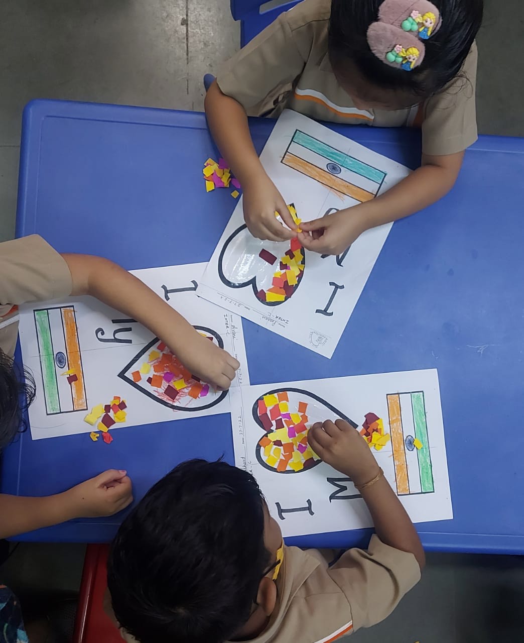 The children of P.P. Inter showed their love for the country by doing a paper tearing activity on the Independence day worksheet.