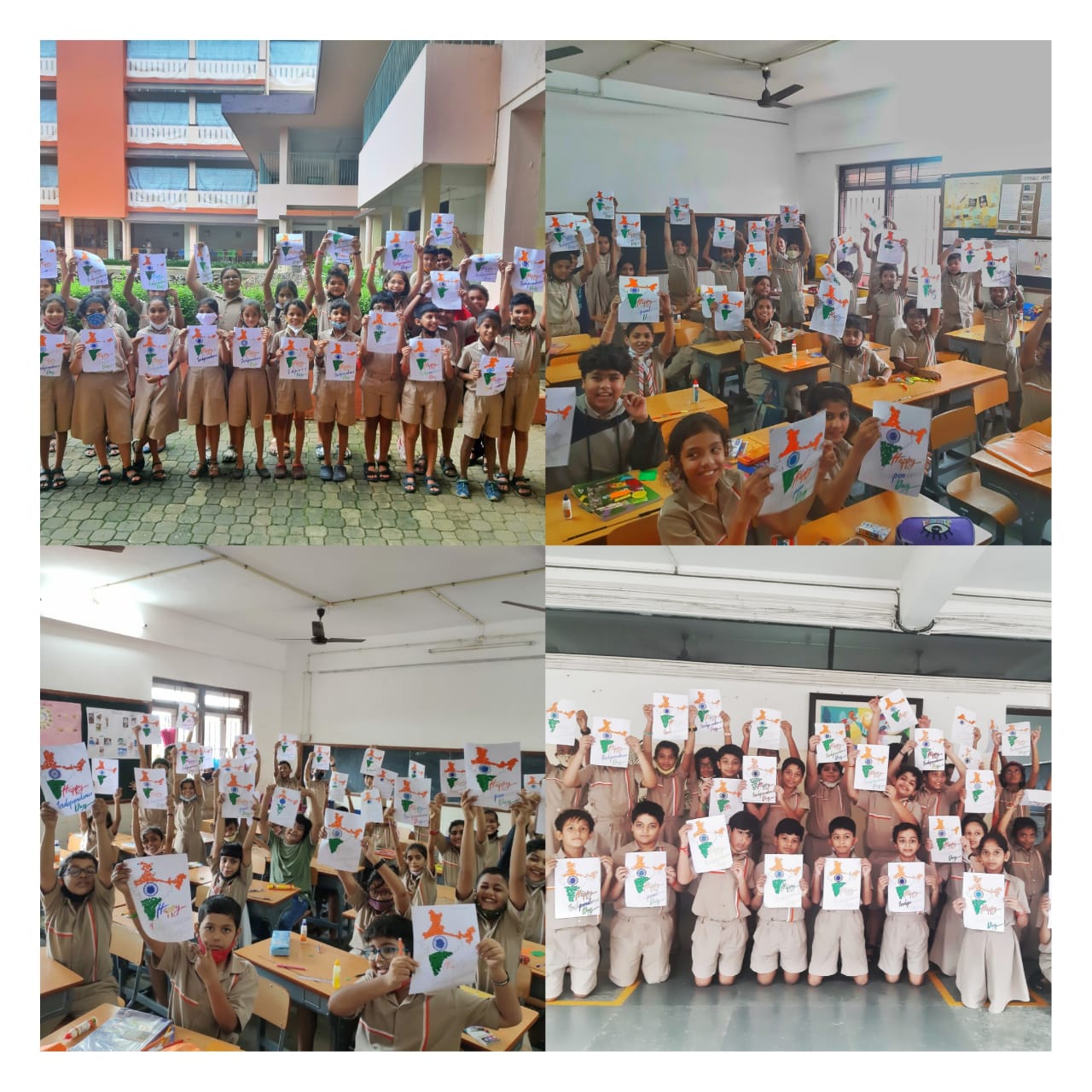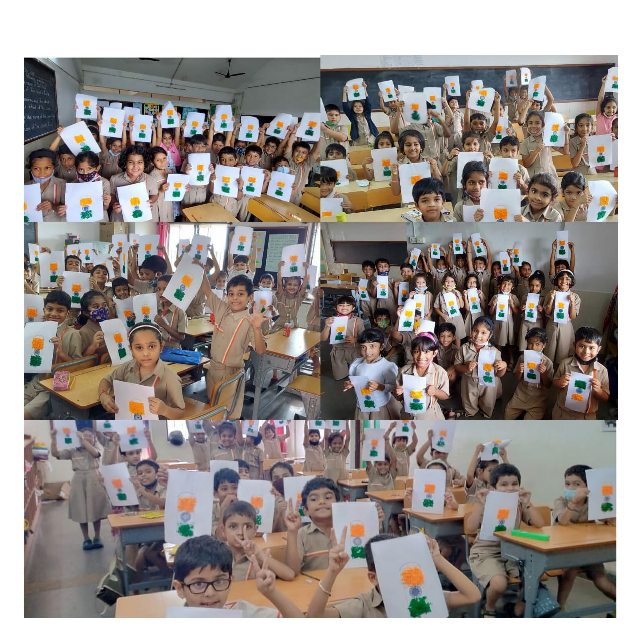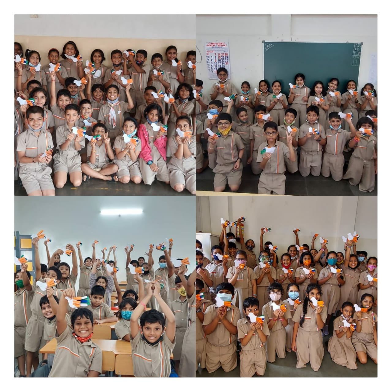 To instill the freedom spirit, the students of the Primary Section participated in various interesting activities that included making a Tricolour Bookmark, a dove using Tricolour paper strips and a collage of the map of India and an image of a dove. It was conducted with much enthusiasm and patriotism.