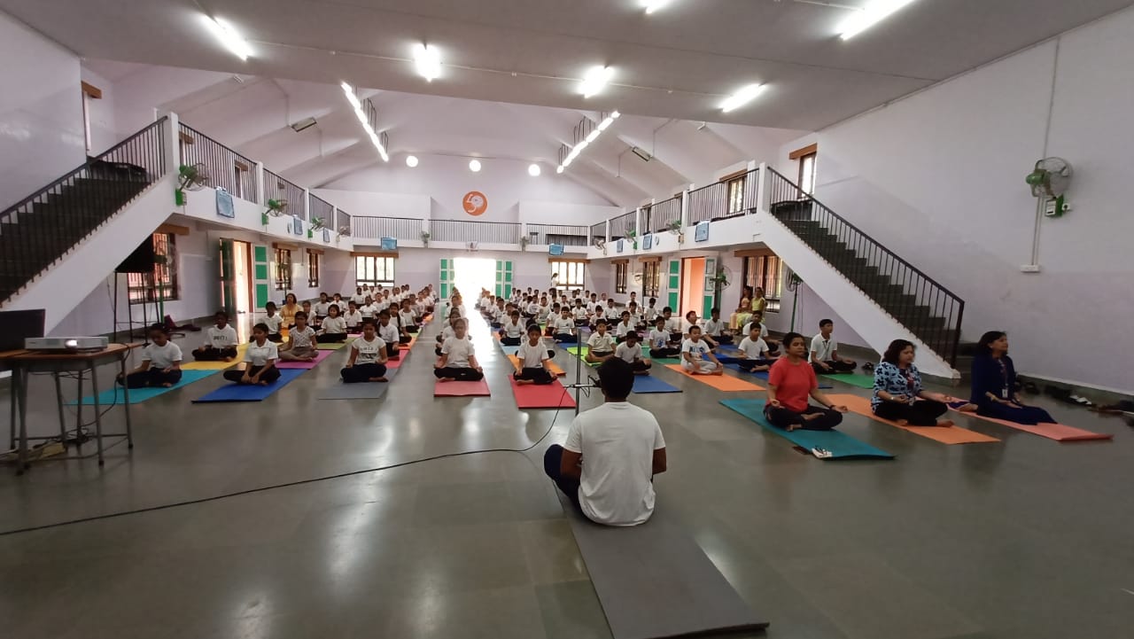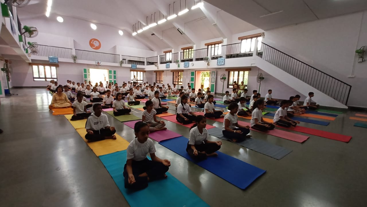 Ashish Shirodkar (B.P.Ed) and Tr. Vijayshree Naik (B.P.Ed). It was followed by different Yoga Asana’s specified by the D.S.Y.A in the given chart /booklet. Our Principals Smt. Srabonee Thakar (Secondary School Section) and Smt. Pallavi Buyao (Primary Section) took active part in all the asanas and meditation..