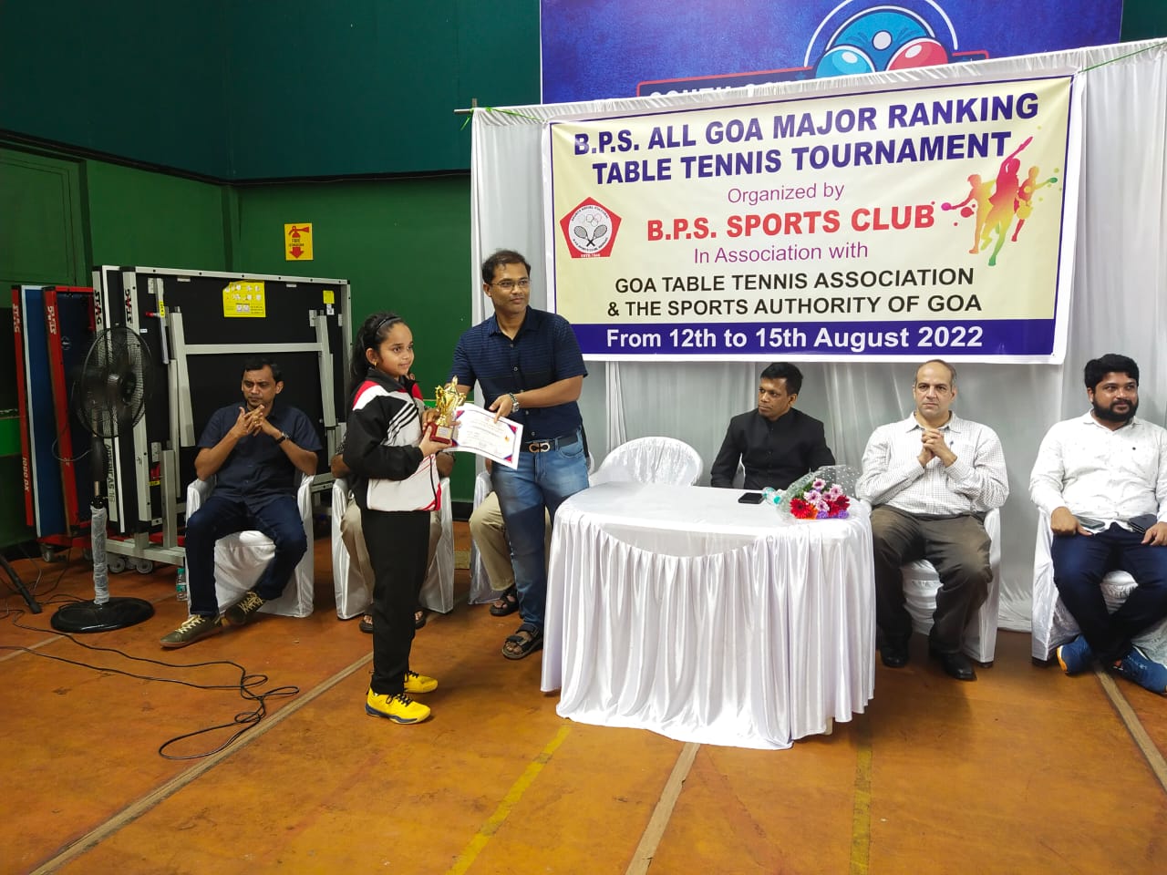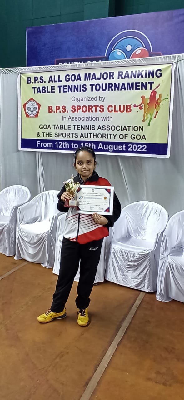 Ishita Colaso had participated for B.P.S ALL GOA MAJOR RANKING TABLE TENNIS TOURNAMENT Organized by B.P.S SPORTS CLUB In Association with GOA TABLE TENNIS ASSOCIATION AND SPORTS AUTHORITY OF GOA which was held from 12th August to 15 August 2022 at SAG INDOOR STADIUM,FATORDA MARGAO GOA.