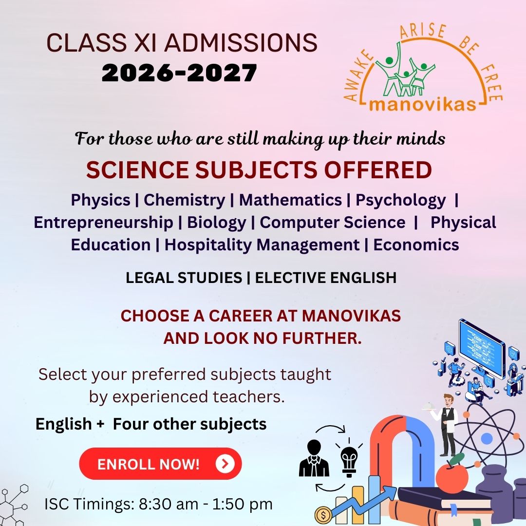 Ready to take the next big step toward your dream career? At Manovikas ISC, we offer a dynamic selection of Science, Commerce, and Humanities streams β thoughtfully designed to align with your passions and unlock your highest potential. β¨ Expert and dedicated faculty β¨ Future-ready, career-focused curriculum β¨ Holistic development beyond academics β¨ NO Registration Fees for Manovikas students Donβt just select a stream β choose a future filled with possibilities. Your dreams deserve the right direction. π Apply today and begin your journey toward excellence! #ManovikasISC #admissions2026 #ChooseYourPath #FutureBeginsHere #manovikasenglishmediumschool #margao #goaschools #topschoolsingoa