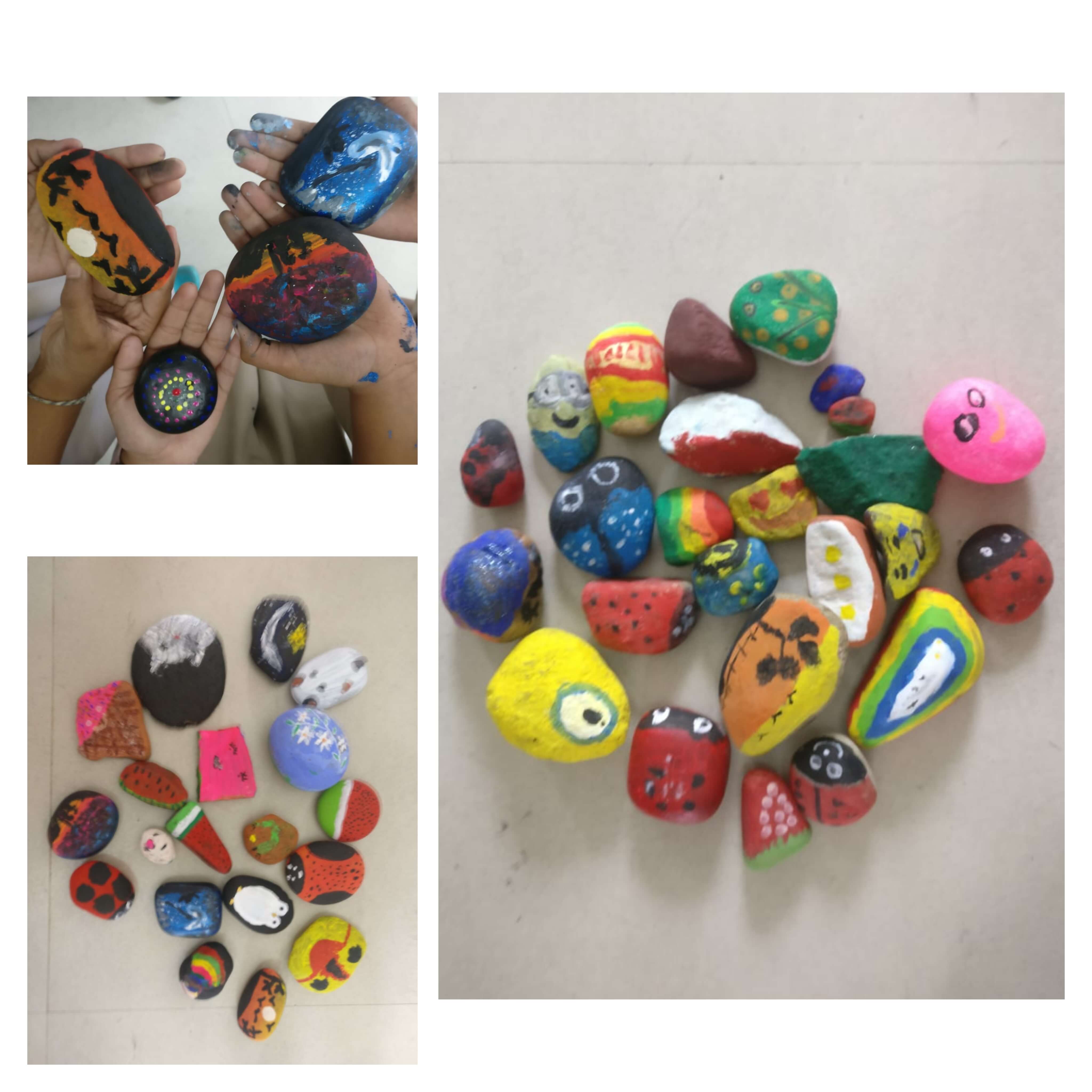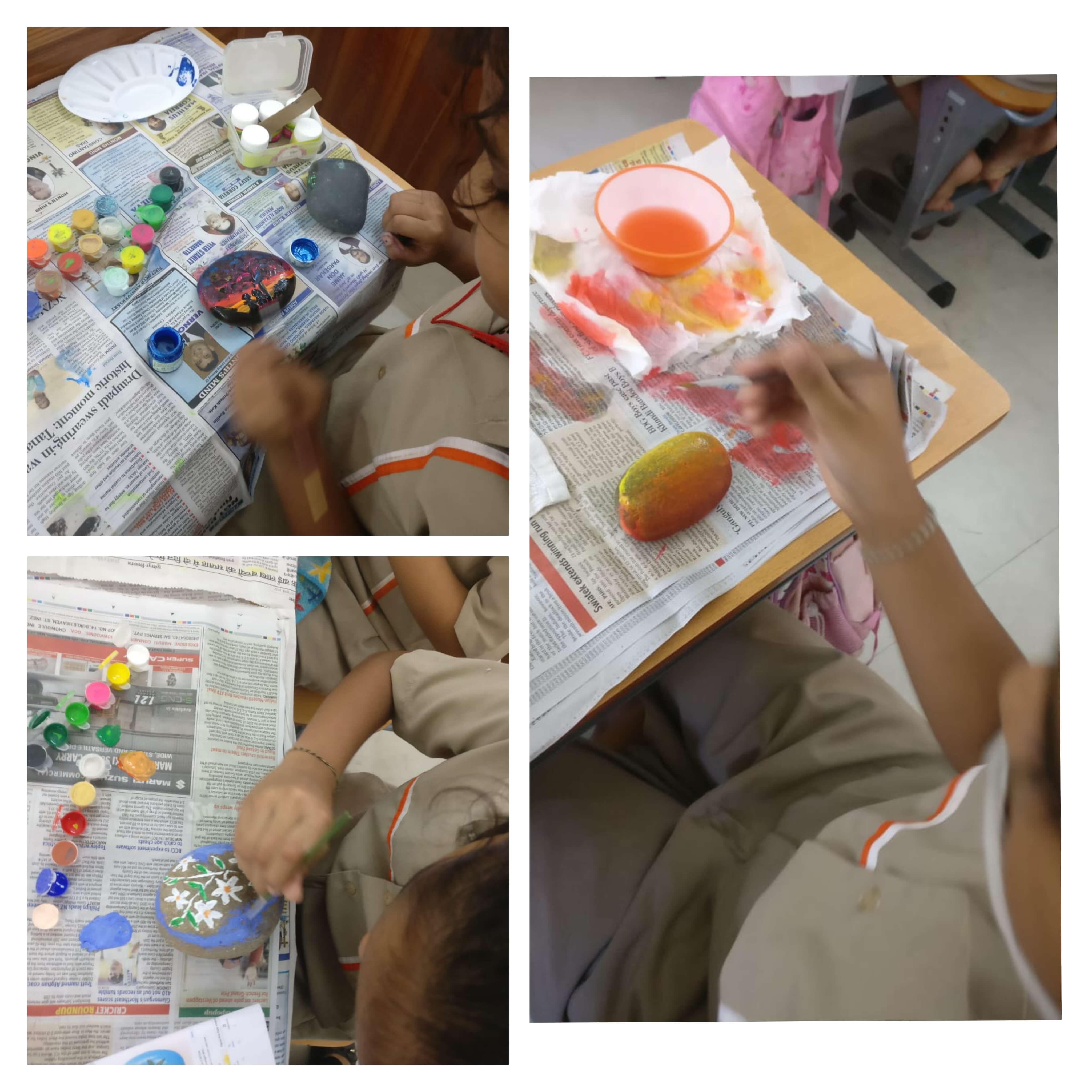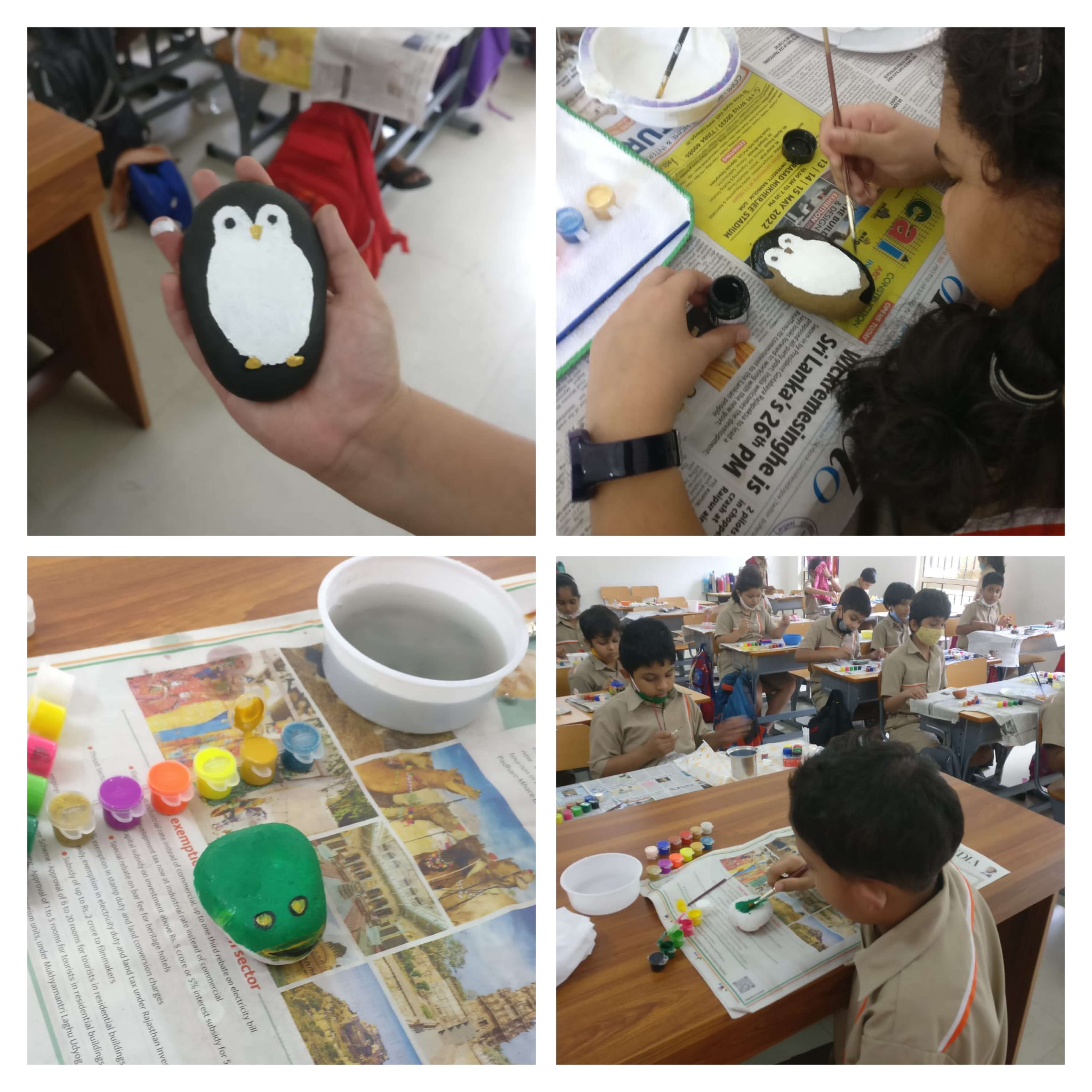 Students of class 3 engaged themselves in lighting up their imagination with the session of creative pebble painting, which resulted in beautiful art work with pebbles that one could use as paper weights.