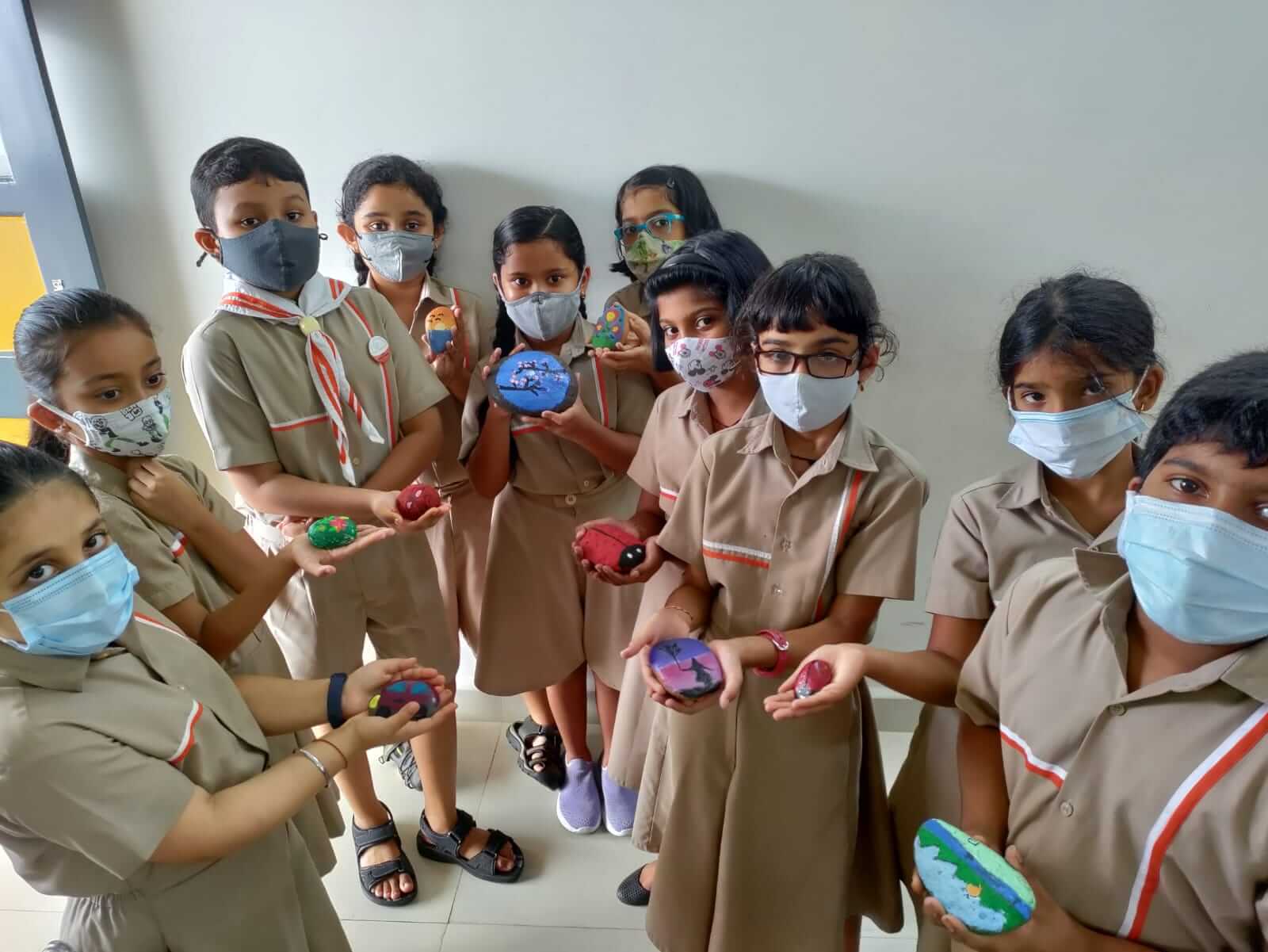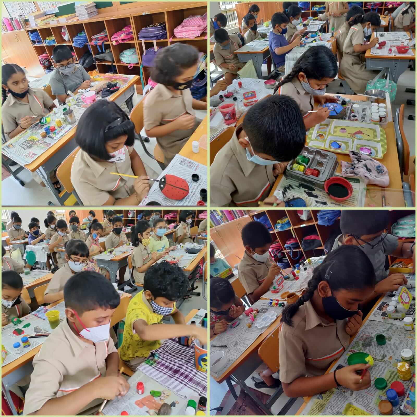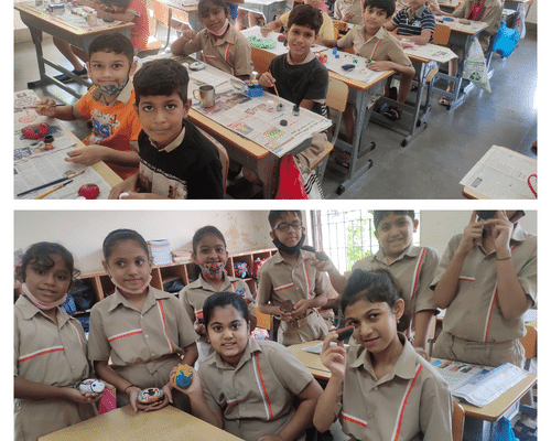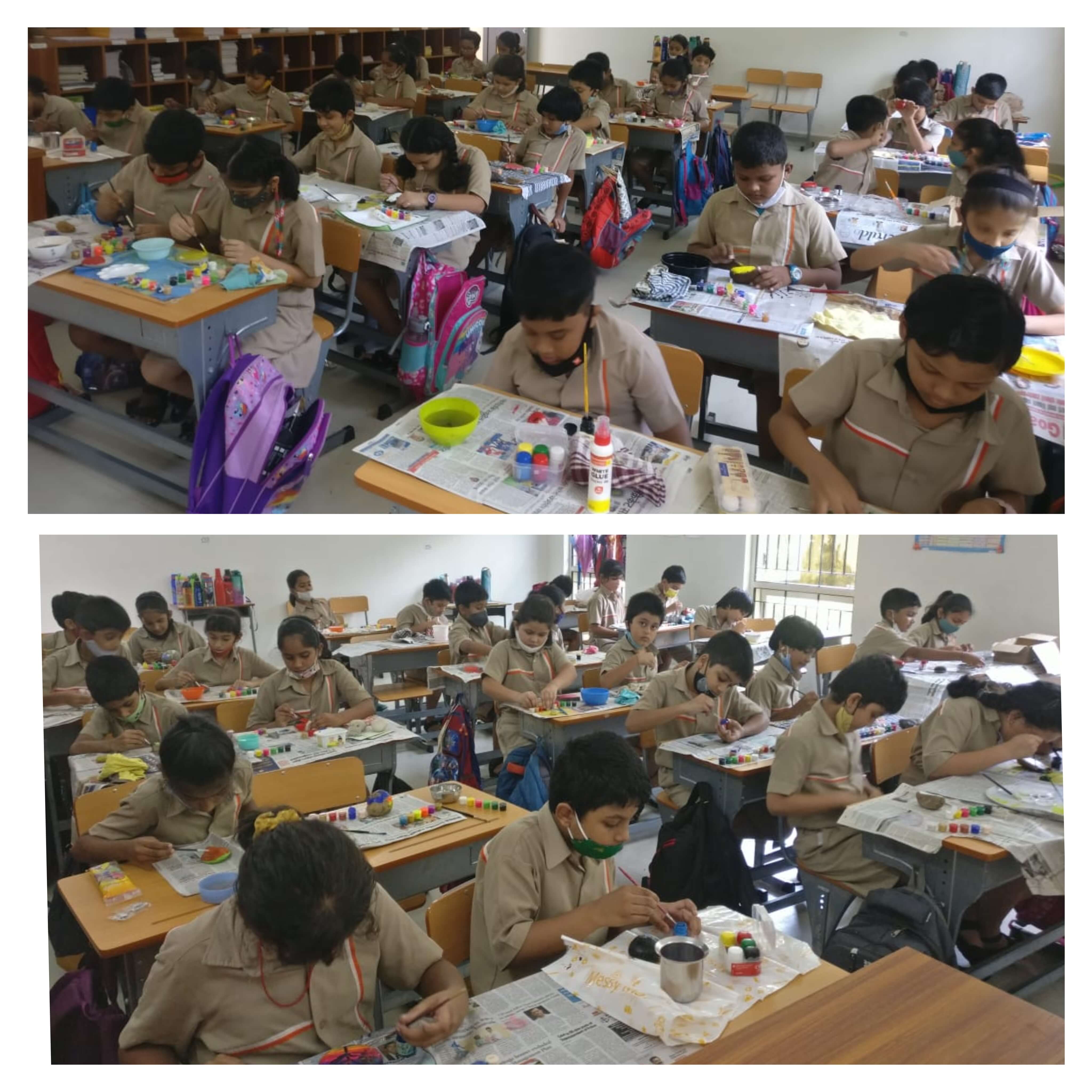 Students of class 3 engaged themselves in lighting up their imagination with the session of creative pebble painting, which resulted in beautiful art work with pebbles that one could use as paper weights.