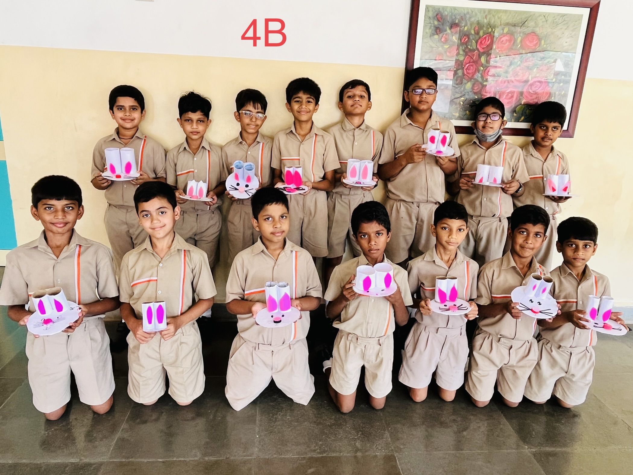 Students of class 4 enthusiastically participated in the Easter Bunny pen holder making activity. The activity boosted their creative skills.