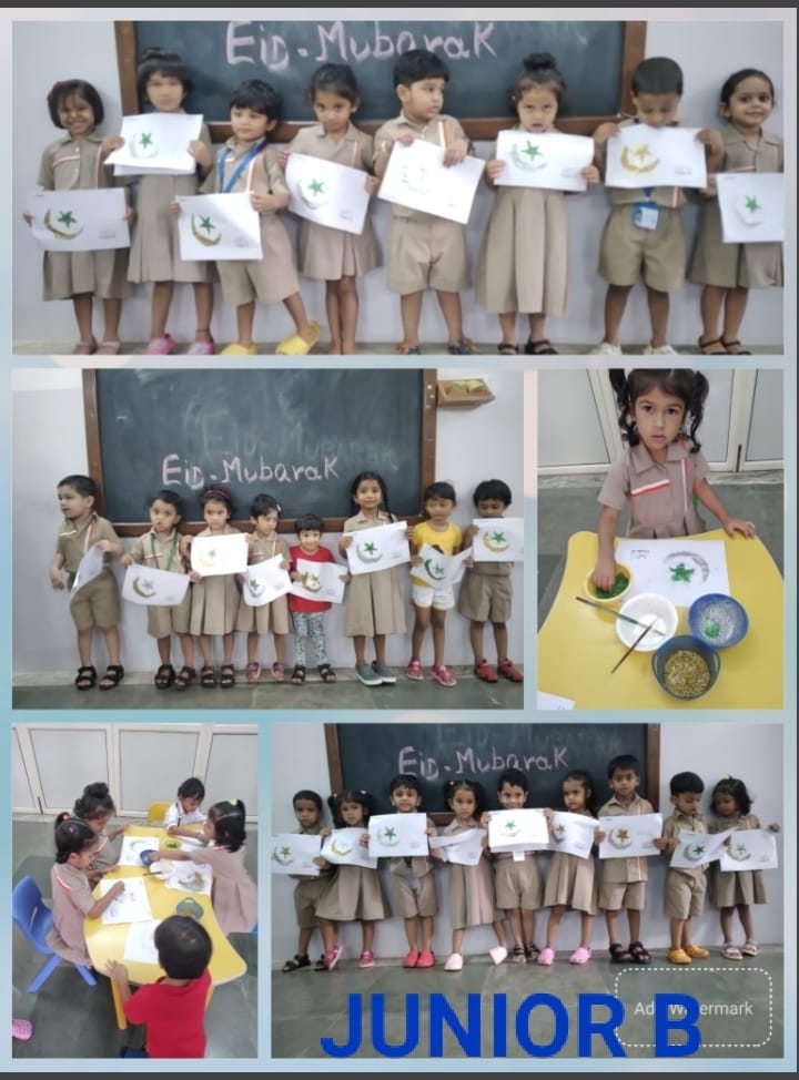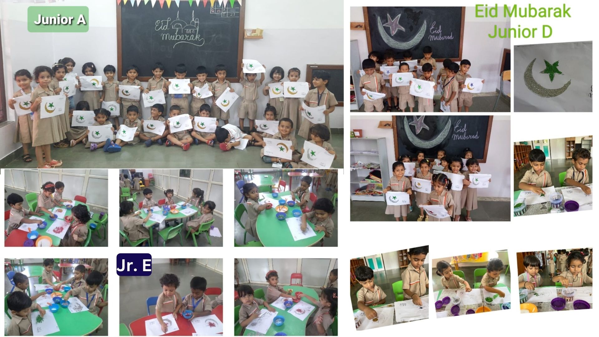 PP Juniors did an Eid activity worksheet and enjoyed using different coloured glitter to decorate the worksheet in school.