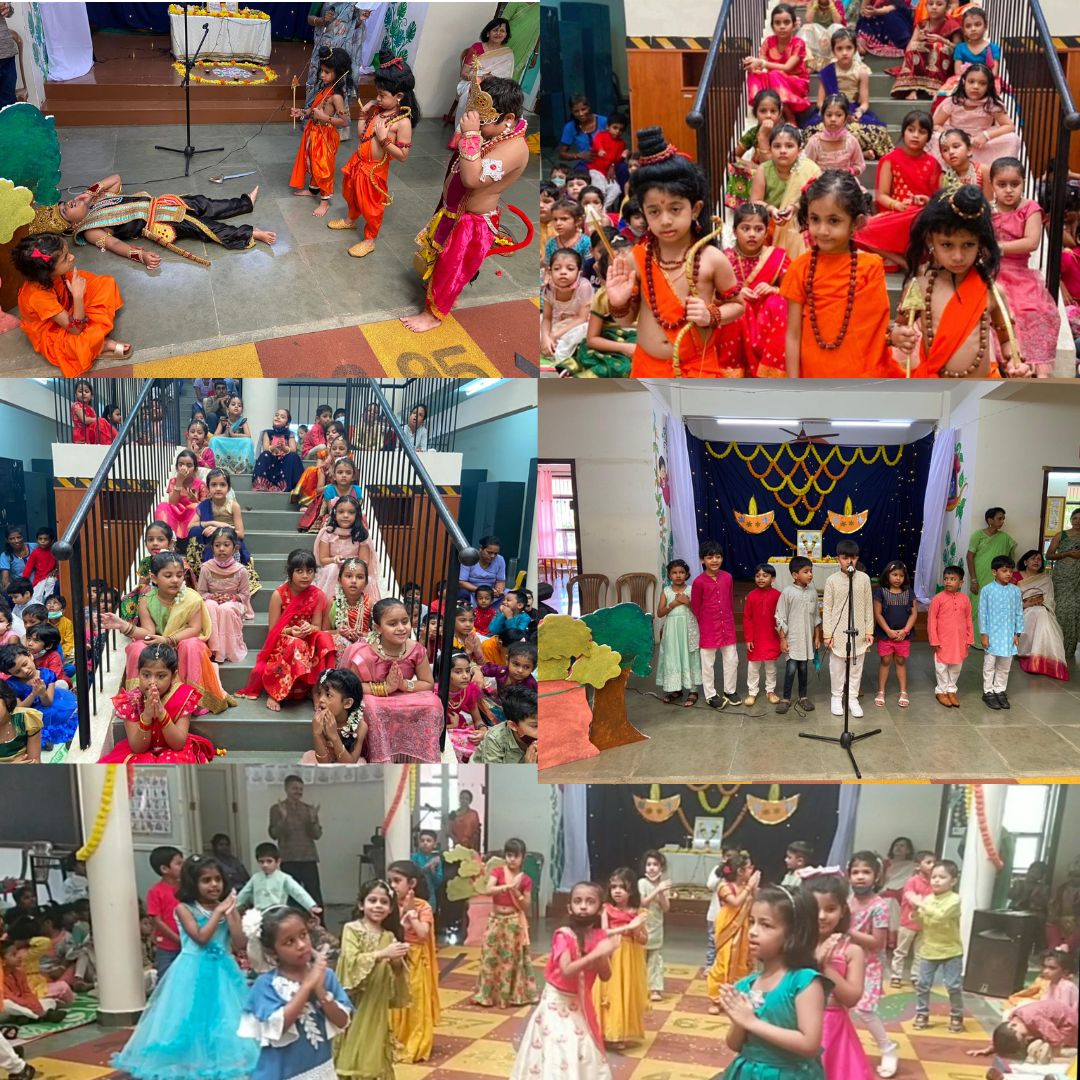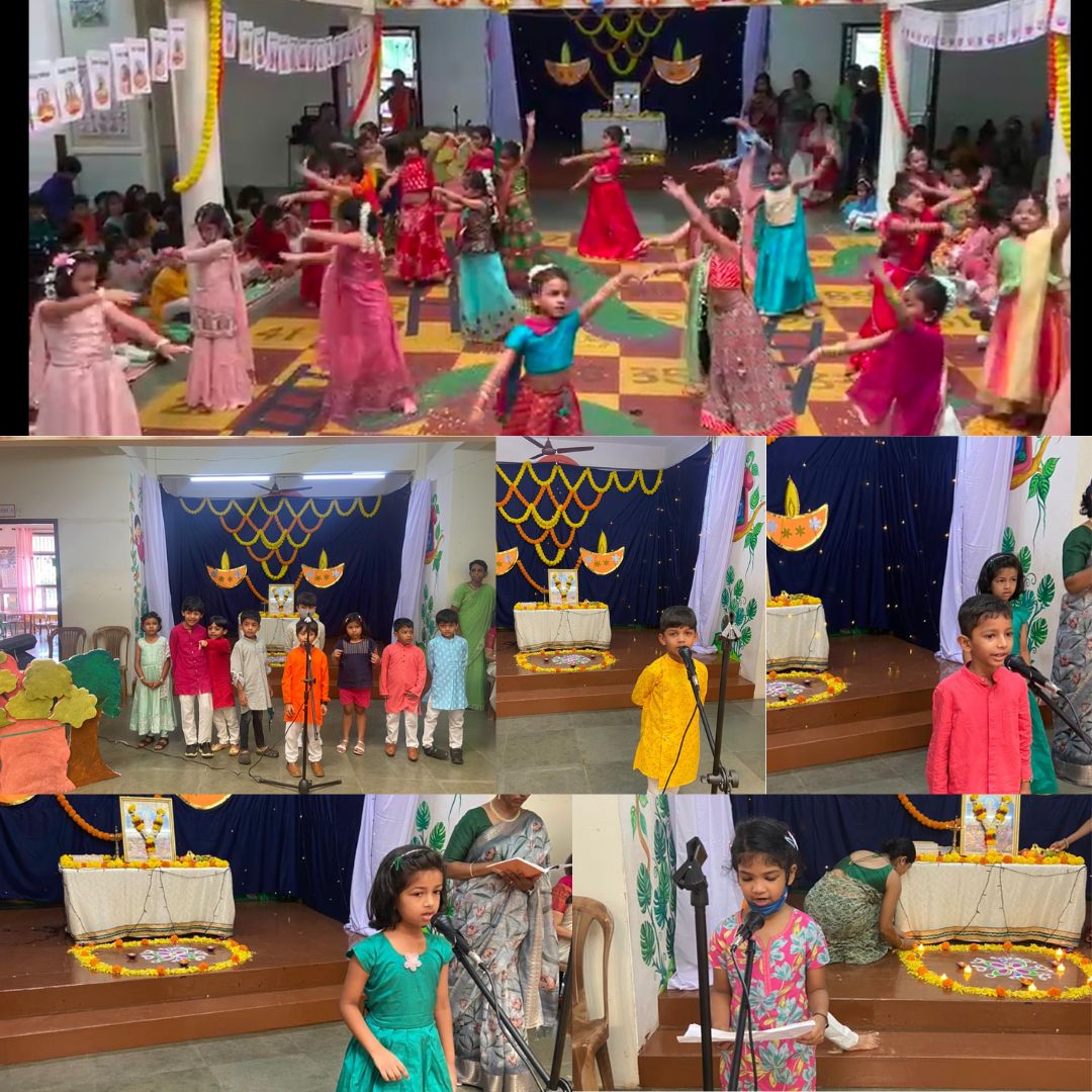 Diwali, the festival of lights, is celebrated throughout India with great fervor. The Pre-Primary building was beautifully decorated with lanterns and lamps. The PP Senior E class conducted this special assembly. The students enacted a role play of Lord Ram's return from exile. Laxmi Puja, a significant ritual of Diwali, was done along with shloka recital. A semi-classical dance was performed by the girls of PP Senior.