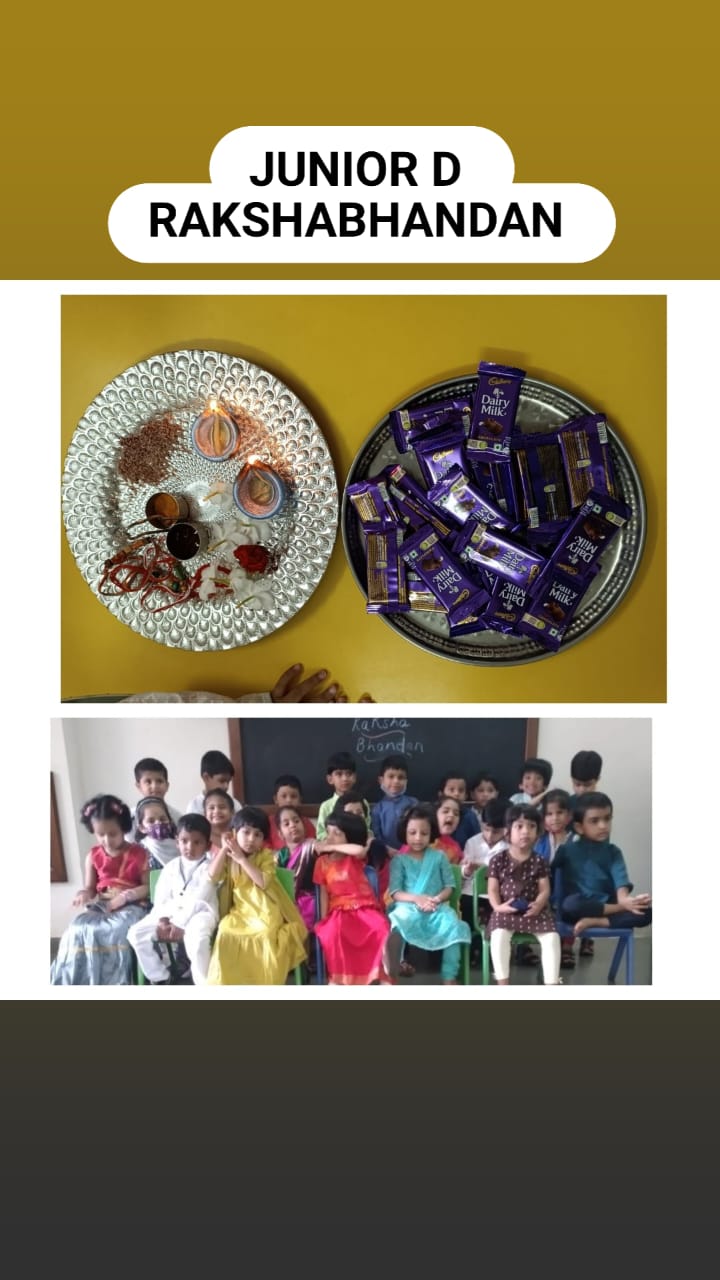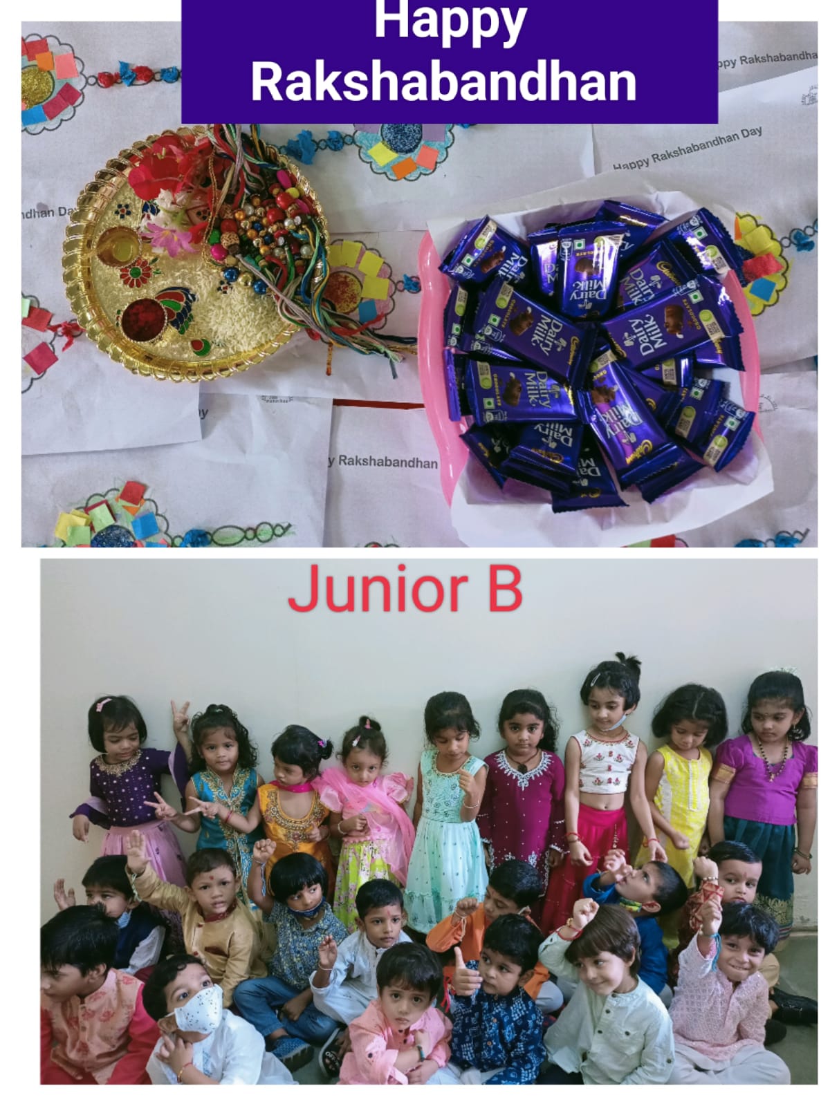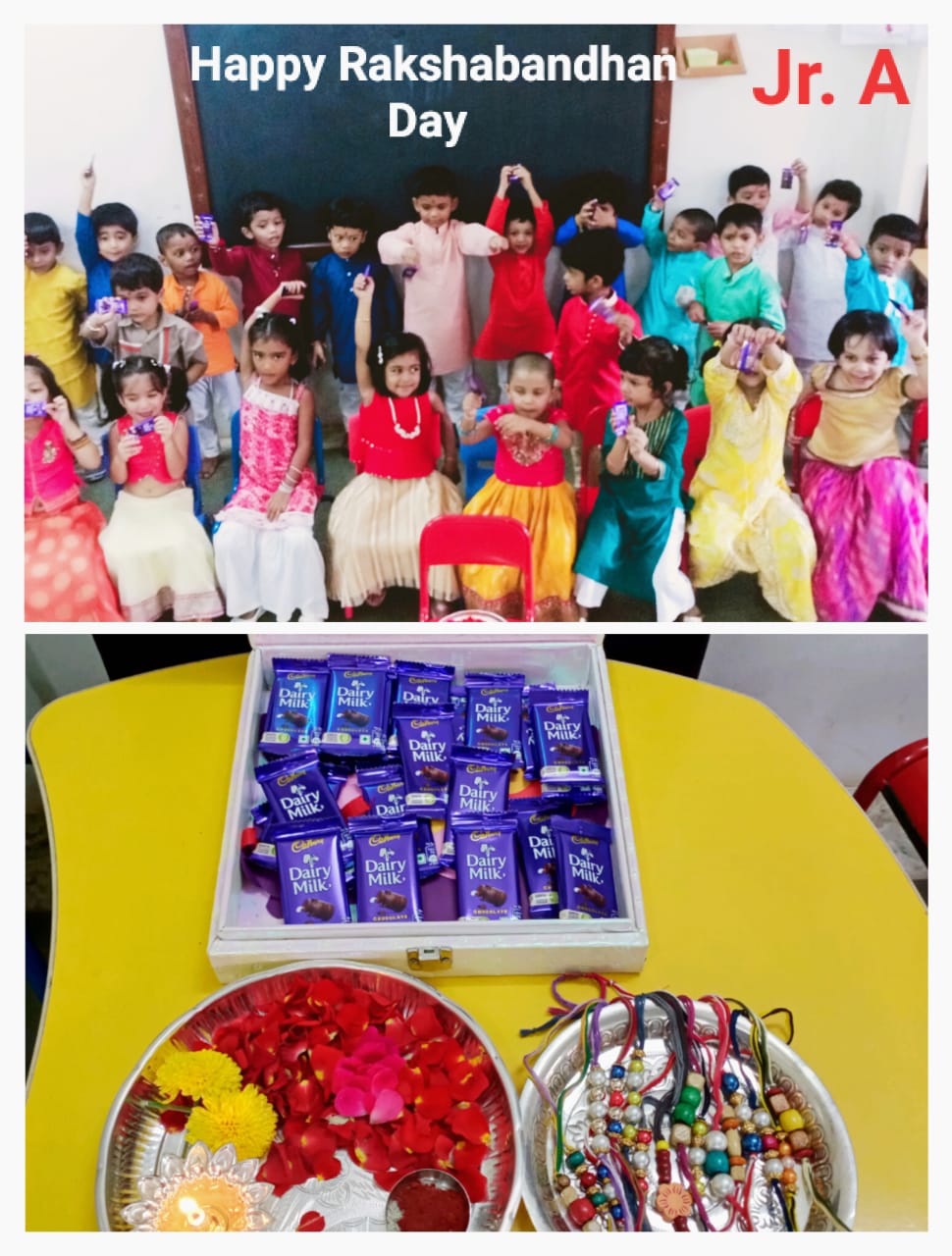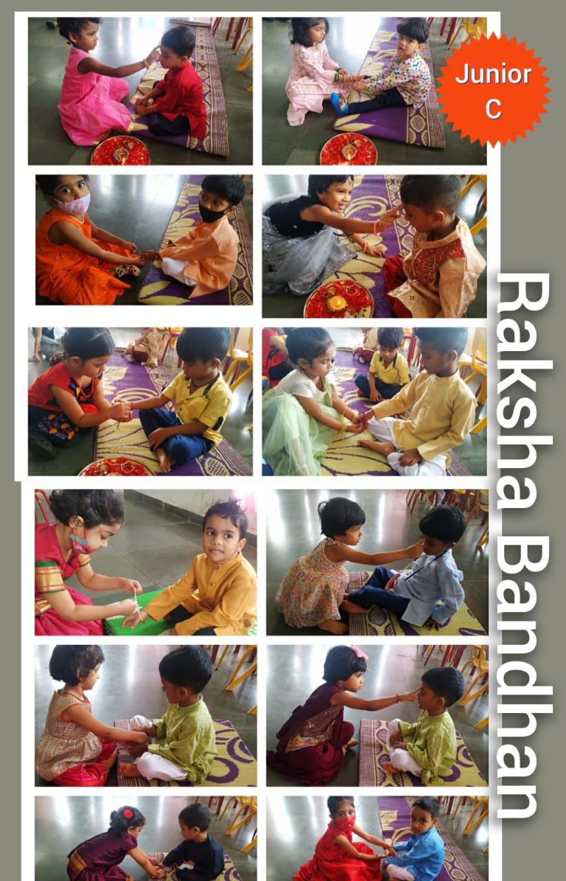 Junior section children thoroughly enjoyed this beautiful festival. First they decorated a worksheet on rakhi using various materials. Then the girls tied colorful rakhis to the boys lovingly made by children from the resource class.
