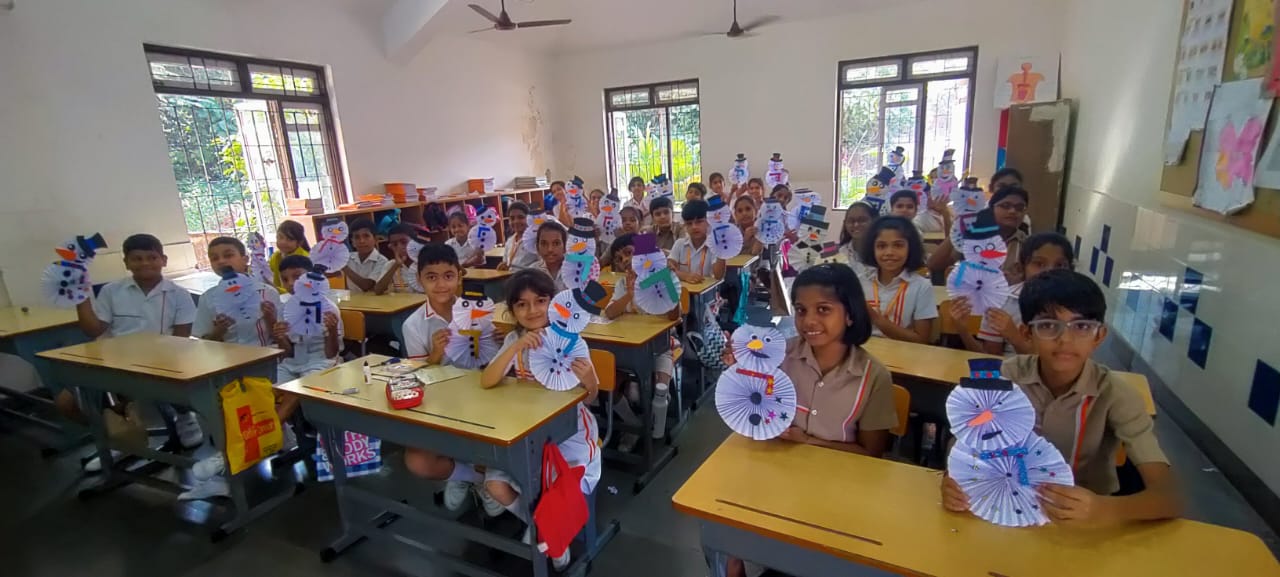Students of class 4 made a snowman as a fun filled activity for Christmas.