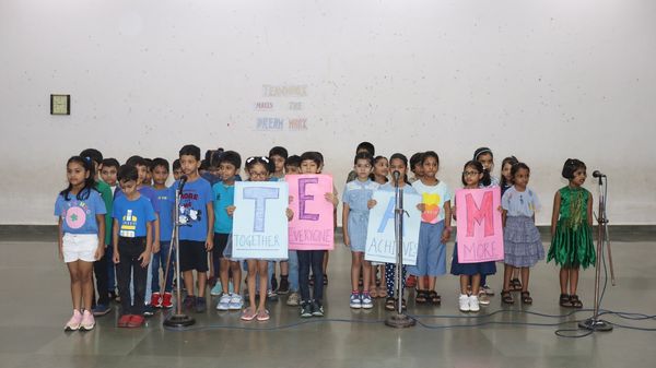 Students of Class I D conducted an assembly on "Teamwork" which helped children understand the value of teamwork.