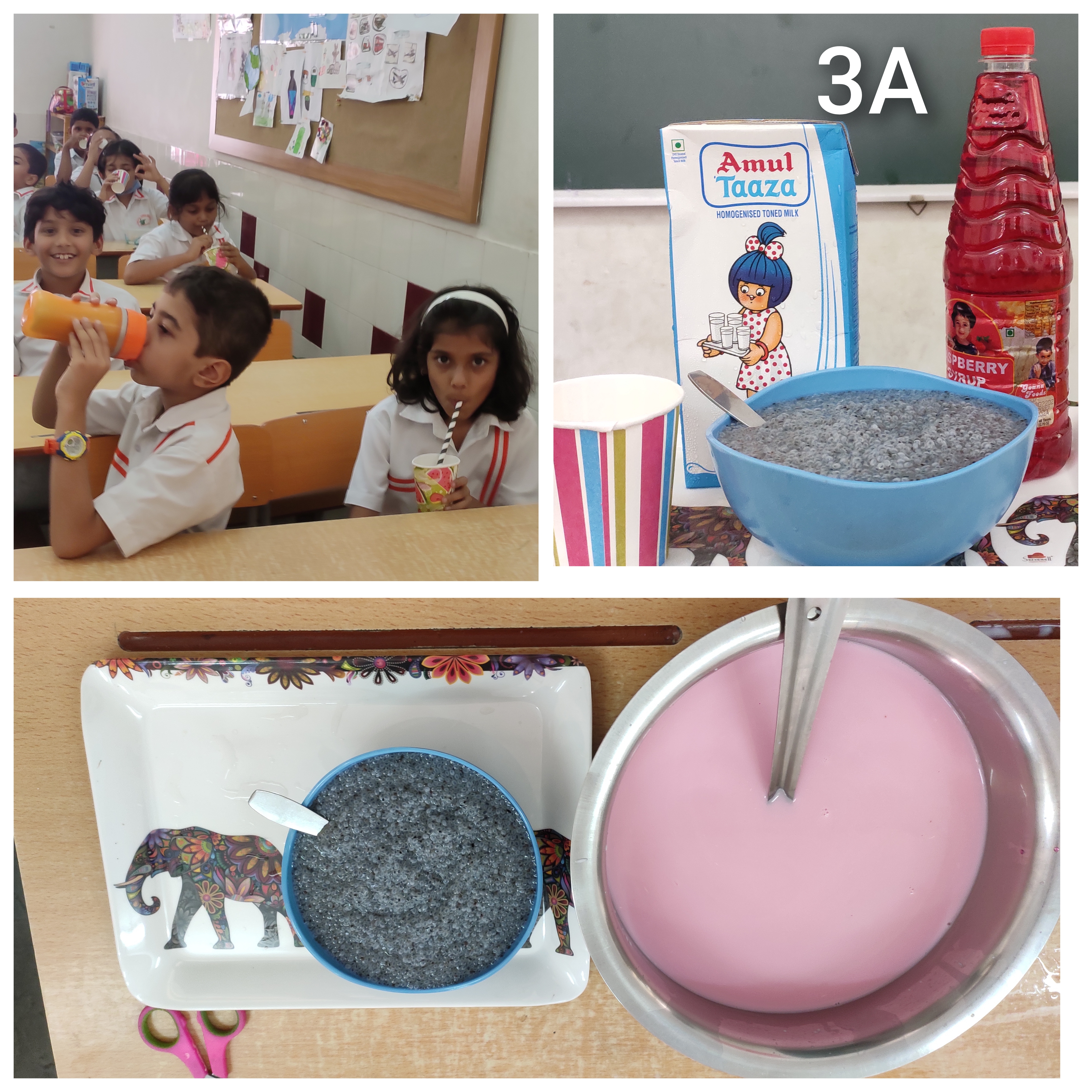 With the summer heat soaring,everybody needs a refreshing drink. To replenish our body with some cool beverage,the students of Class 3 had a 'Falooda-Making' activity.