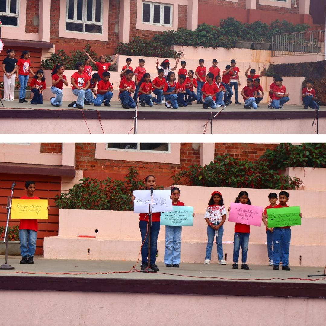 The Primary Section marked the beginning of the new academic year with a heartwarming assembly. The assembly commenced with a cheerful welcome dance, setting a positive tone for the year ahead. The special highlight of the assembly was the emphasis on classroom rules for happy learning followed by two energetic songs performed by the students. Their enthusiastic singing and actions brought joy to the audience and filled the space with positivity and cheer, making the assembly engaging and memorable