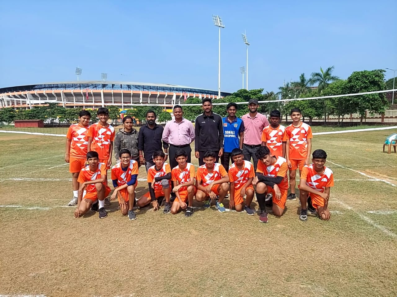 Throwball team of U-14 boys secured second place at inter school Throwball competition organized by director of sports and youth affairs at Fatorda ground.