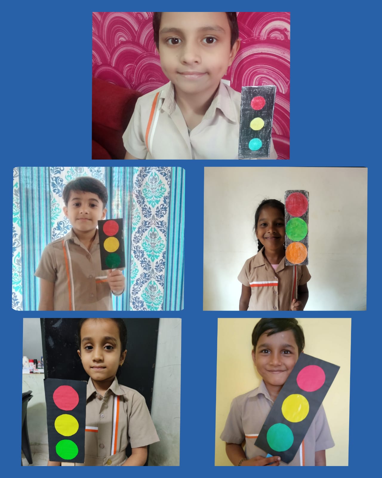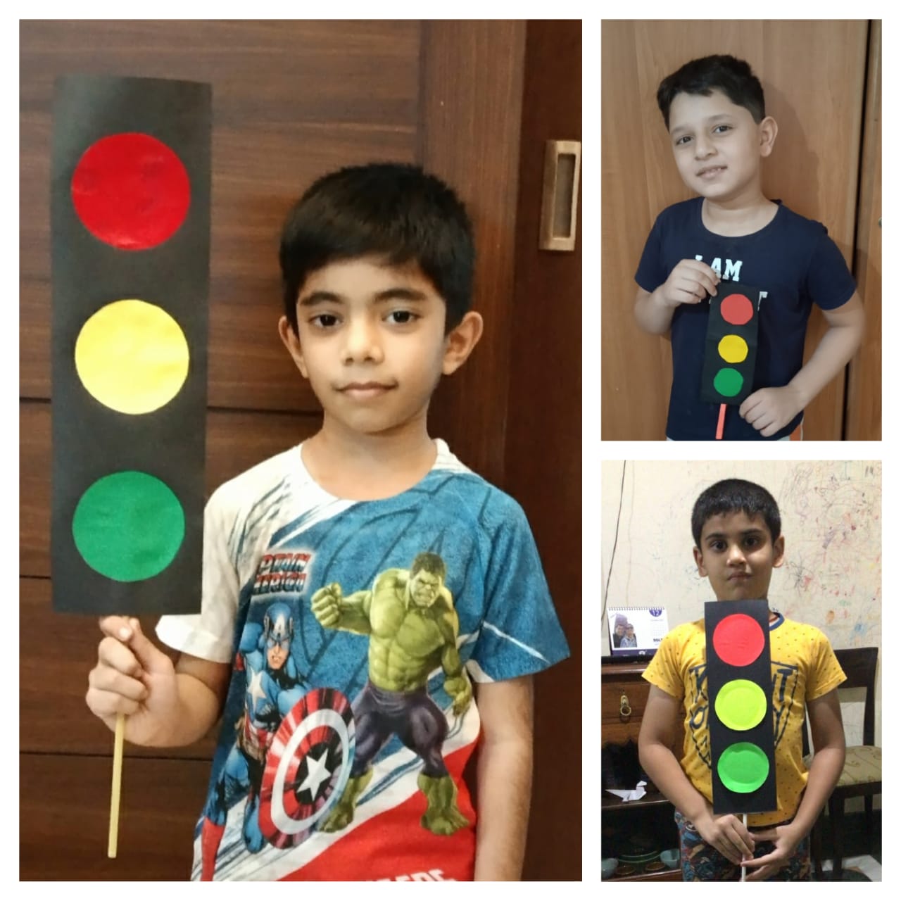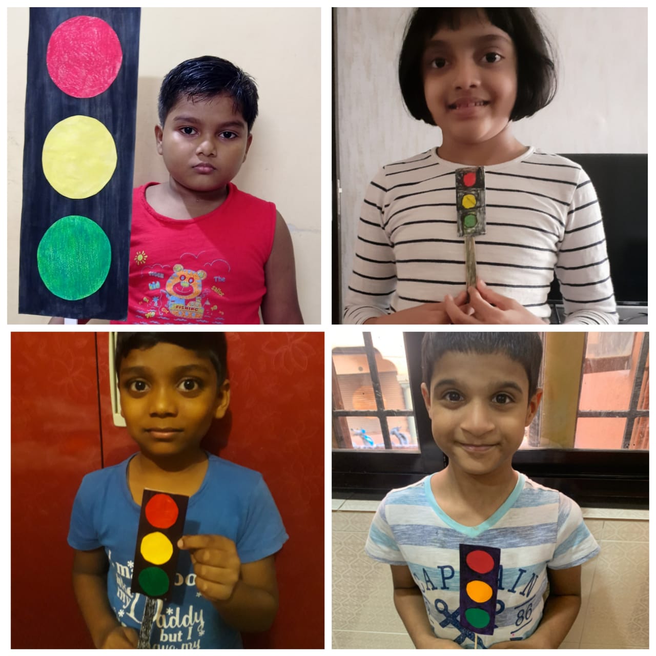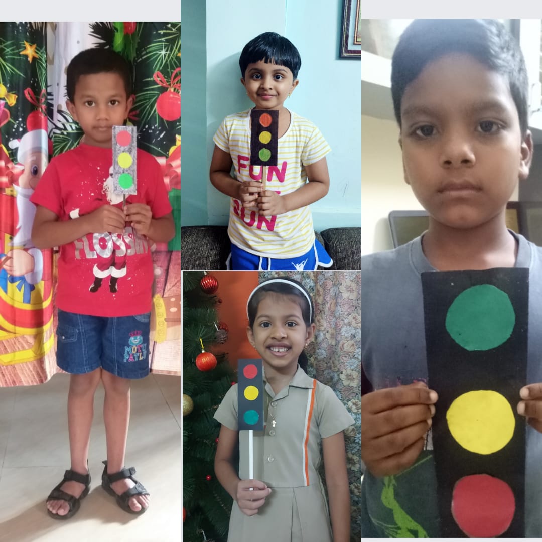 "Stop!Look!Listen!Think!" As the students of class 1 study about the traffic lights they were presented with an interesting assignment. The assignment was to create a model of Traffic Light using cardboard boxes. The students used shoe boxes, gift boxes, tetra packets etc. and created wonderful and colourful models of traffic light.