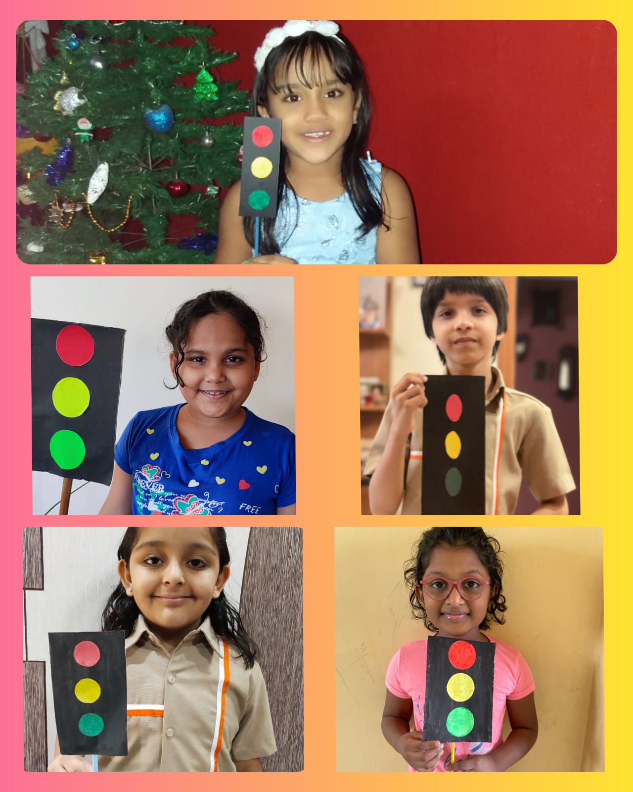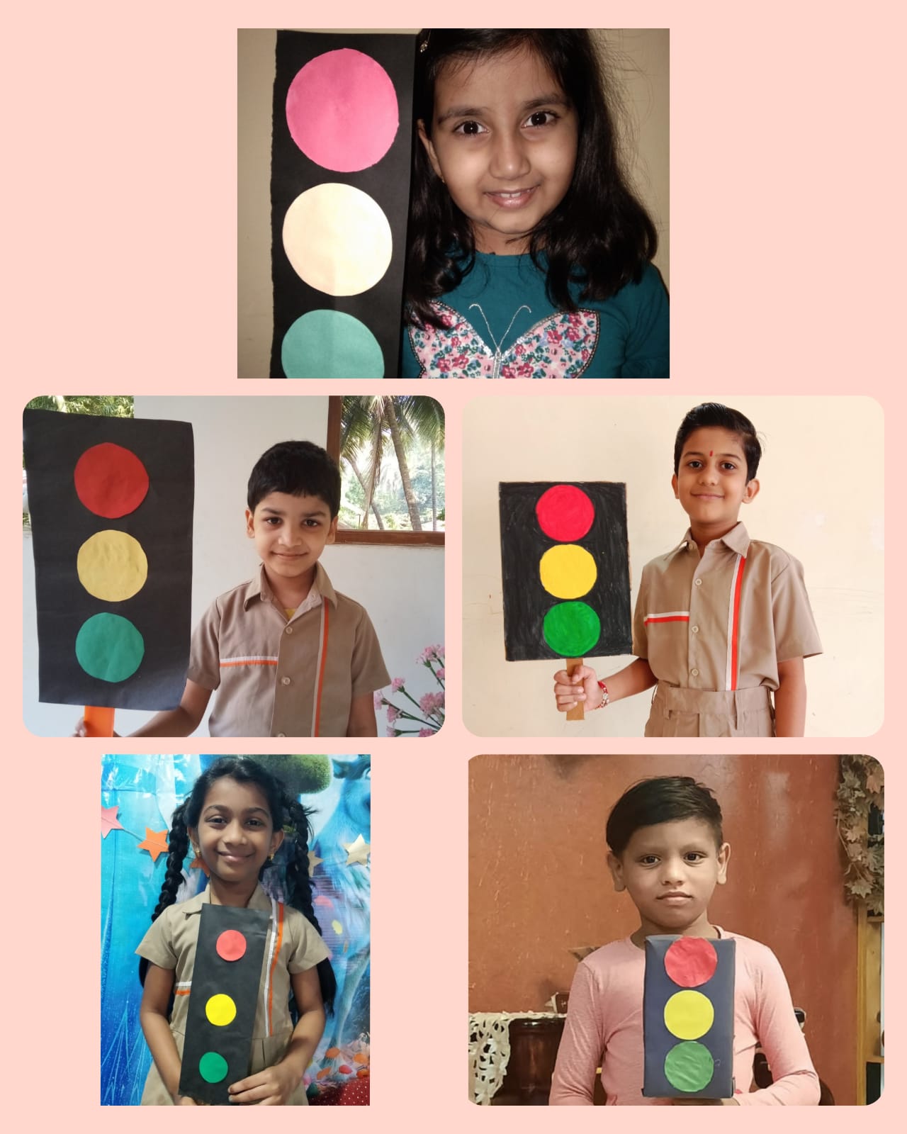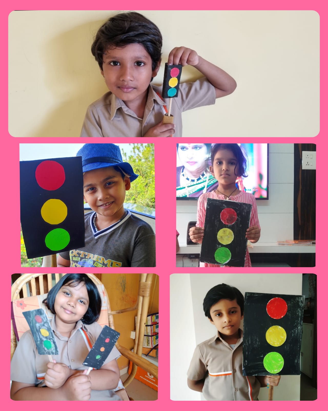 "Stop!Look!Listen!Think!" As the students of class 1 study about the traffic lights they were presented with an interesting assignment. The assignment was to create a model of Traffic Light using cardboard boxes. The students used shoe boxes, gift boxes, tetra packets etc. and created wonderful and colourful models of traffic light.