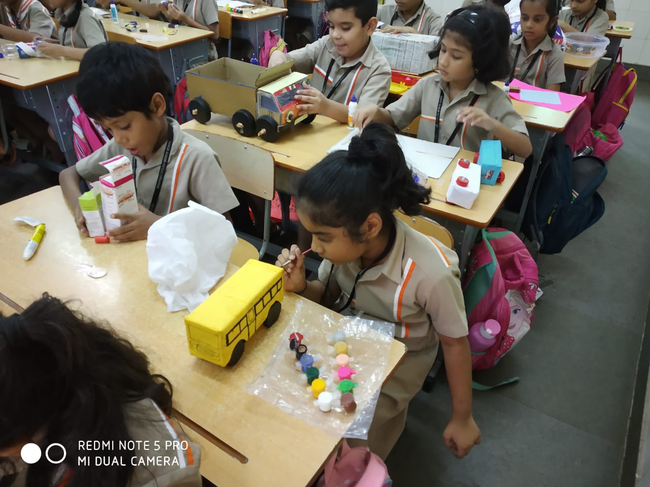 Transport and means of communication are integral part of our life today..An activity was organised for the students of class 2, on model making on the theme means of transport..Students brought different eco -friendly materials like old boxes, cardboard,bottles ,straws,buttons etc..to make their favourite vehicle. This activity exhibited each child's talent and creativity.It was a fulfilled activity.