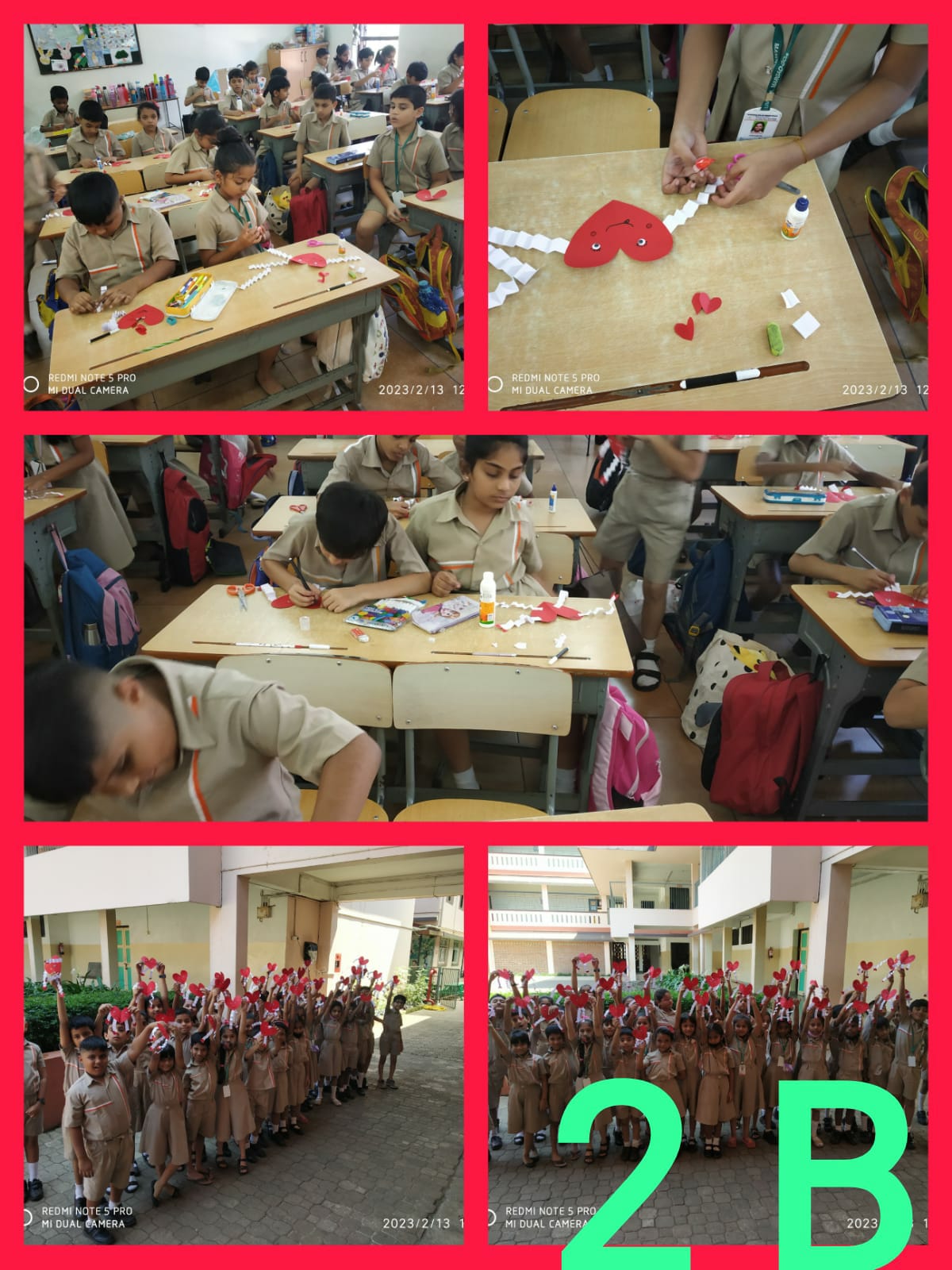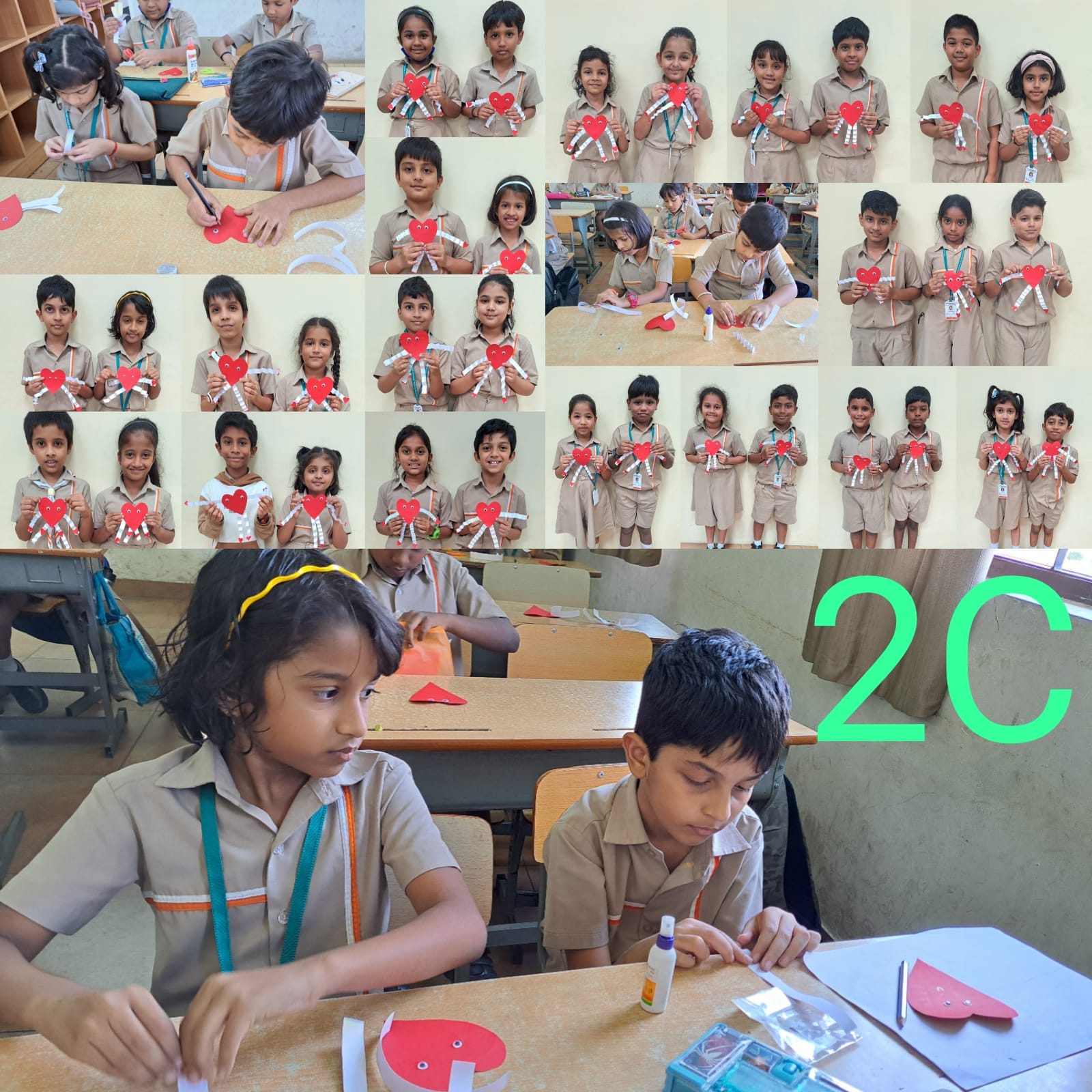 The students of Std 2 made heart-shaped cards a day prior to Valentine's day so that they could present these as a surprise to their loved ones.The students enjoyed making and every card was beautiful showing the interest of each student.Parents were filled with joy to see the love of their kids which was expressed creatively as told by children.