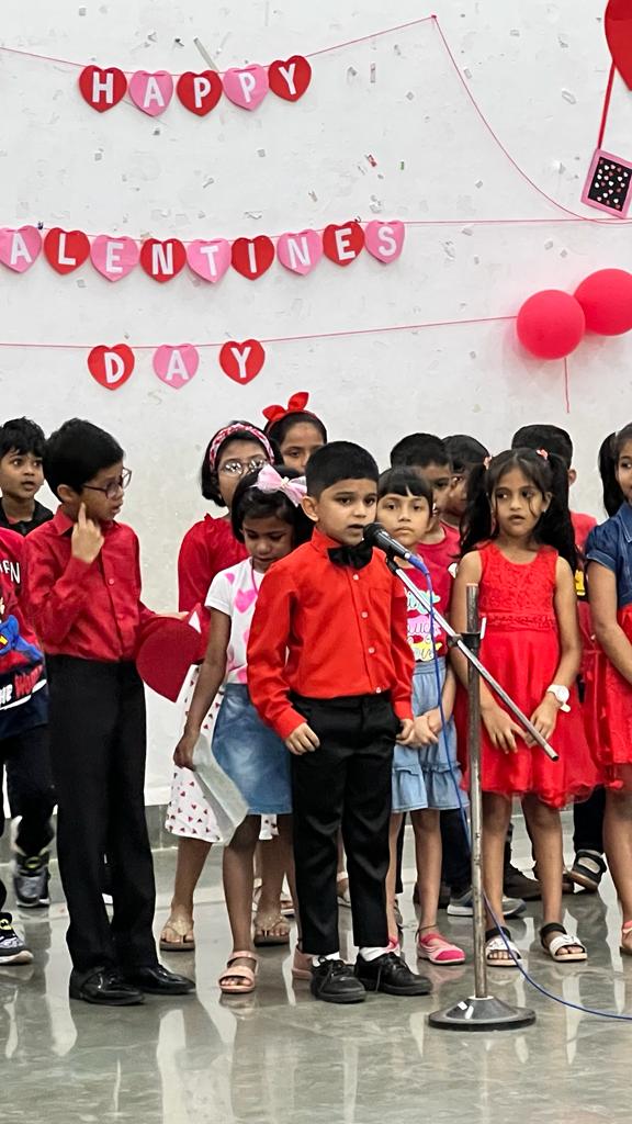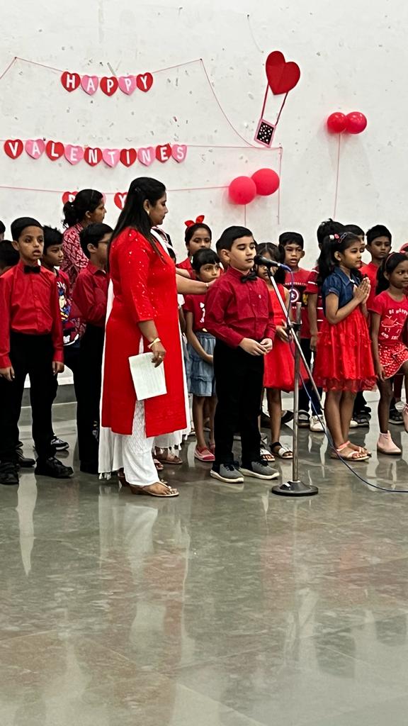 Students of class 1E conducted an assembly that celebrated the true essence of love on 14th of February 2023 on the theme 'Valentine's Day'. They emphasized on the importance of spreading love and appreciating our loved ones through small gestures and loving words. They showcased the immense love one has for our parents, siblings, teachers and friends through the fantastic performances , mesmerizing skit, dance and songs. It was indeed an assembly that created an ambiance of love and joy.