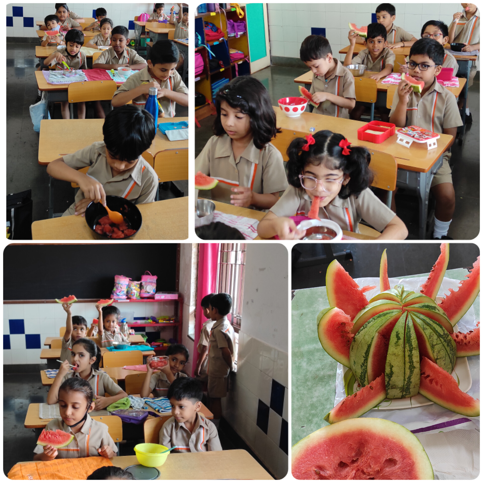Known for its amazingly sweet and juicy appeal,Watermelon is an amazing fruit packed with all vitamins.The school hosted a special watermelon day for the students of class 1 and 2 to promote healthy eating.Students learnt about nutrition,participated in educational and fun activities and of course enjoyed some delicious watermelon.